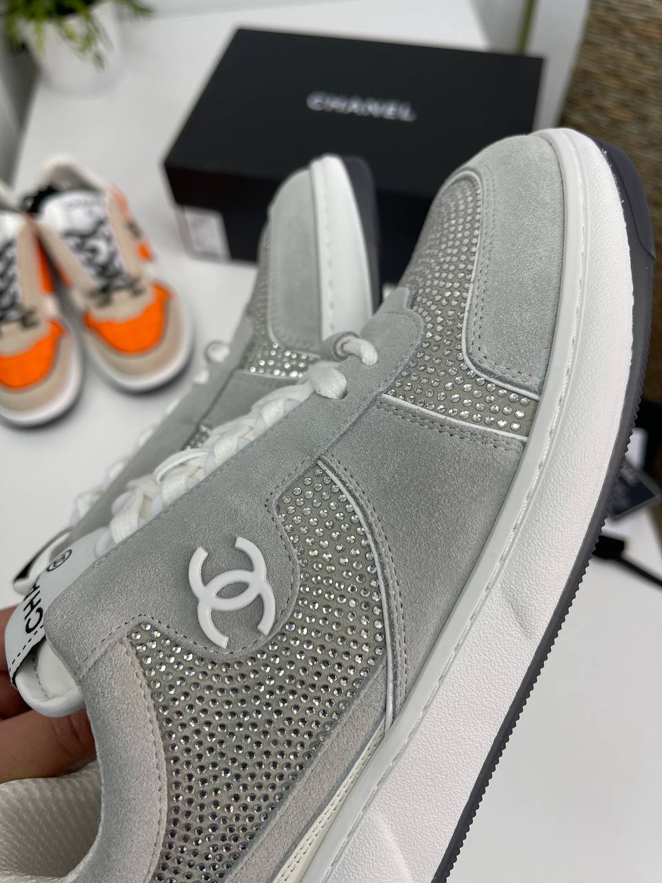 Кеды женские Chanel LUX-85312 — это стильная обувь от известного бренда. Серая расцветка кед с блестящими деталями придает им элегантный и современный вид. Эти кеды идеально подойдут для создания повседневных и модных образов.