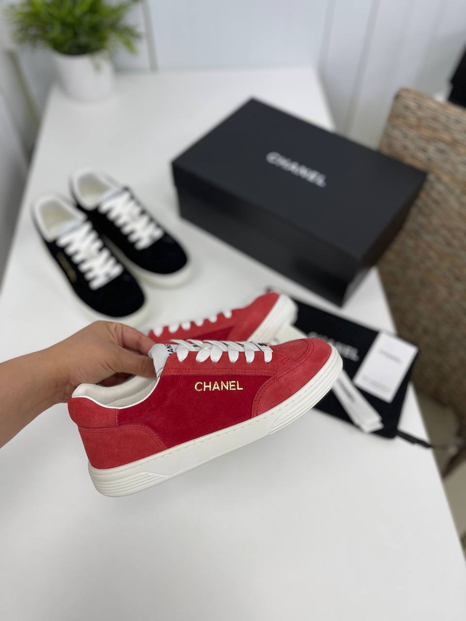 Кеды женские Chanel LUX-92680 – это стильная и удобная обувь от известного бренда. Кеды выполнены в ярком красном цвете с контрастной белой подошвой. Дизайн сочетает в себе спортивный стиль и элегантность, что делает их подходящими для повседневной носки.