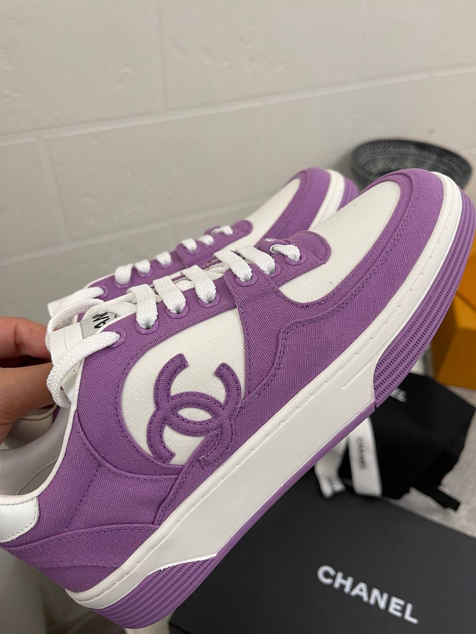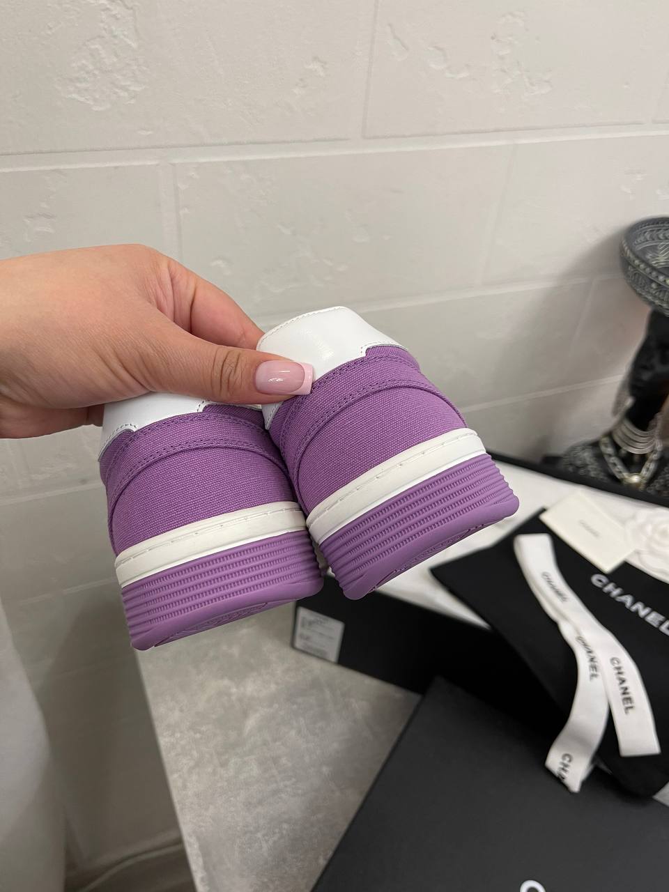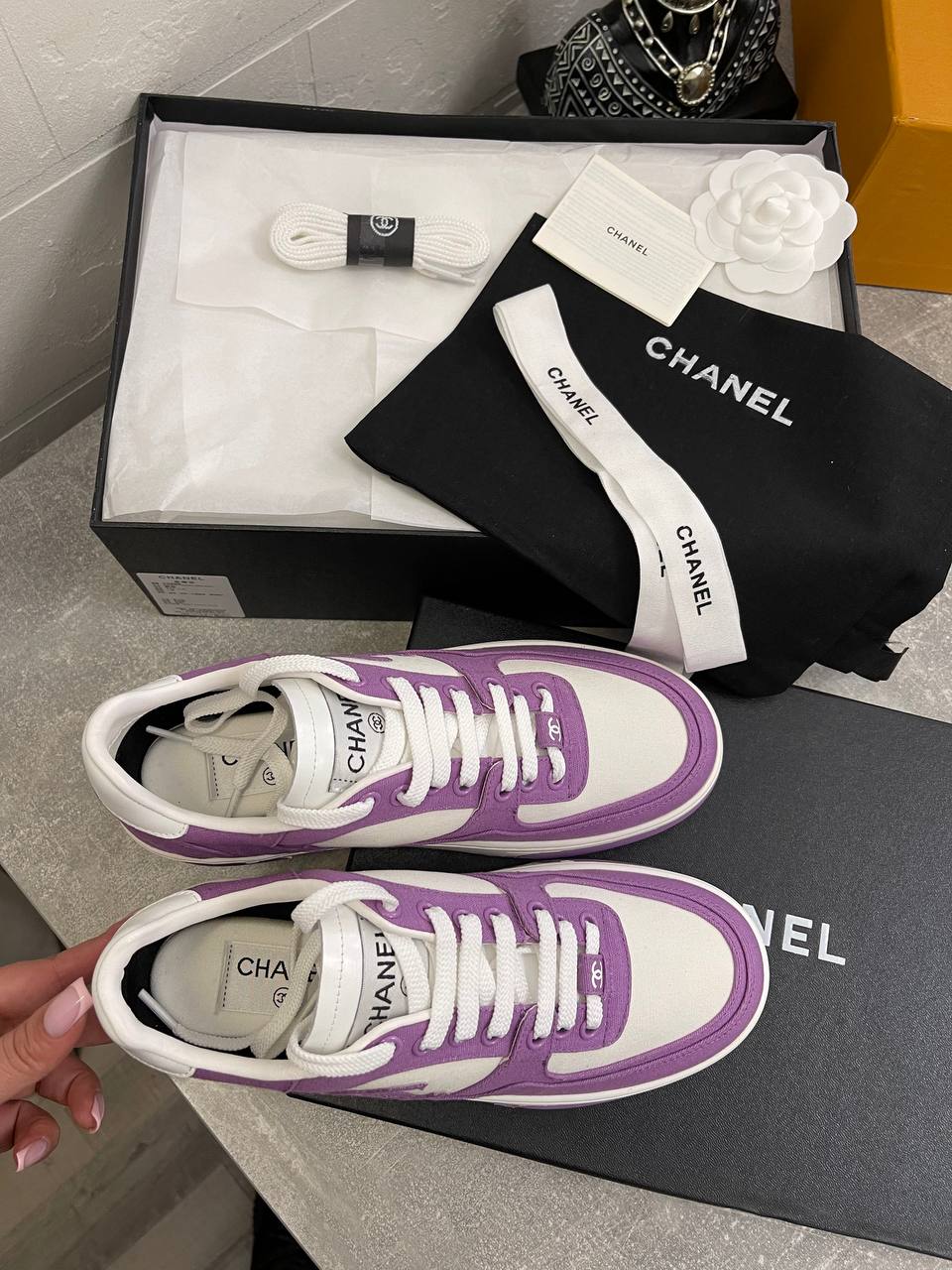 Кеды женские Chanel LUX-104952 — это стильная и удобная обувь от известного бренда. Кеды выполнены в белом и фиолетовом цветах, что делает их яркими и привлекательными. Они идеально подходят для создания модных повседневных образов.