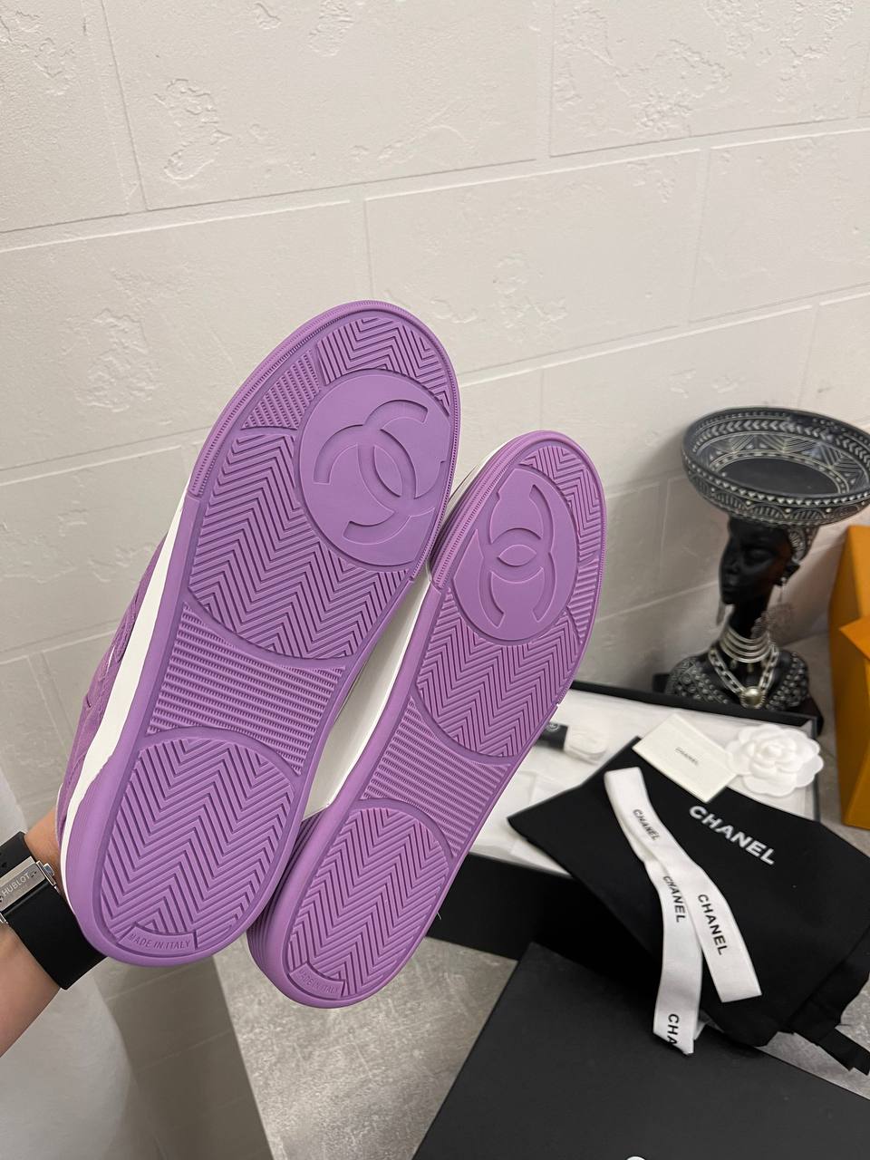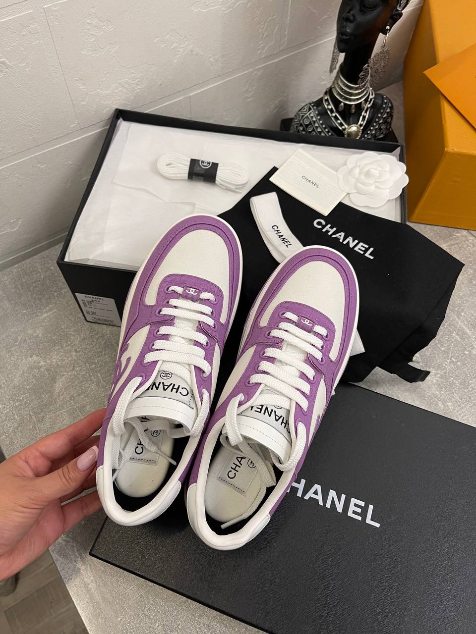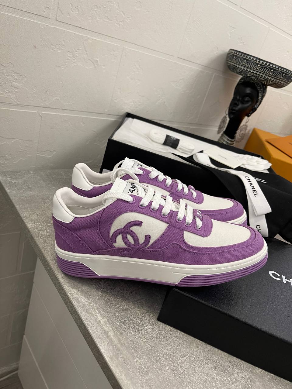 Кеды женские Chanel LUX-104952 — это стильная и удобная обувь от известного бренда. Кеды выполнены в белом и фиолетовом цветах, что делает их яркими и привлекательными. Они идеально подходят для создания модных повседневных образов.