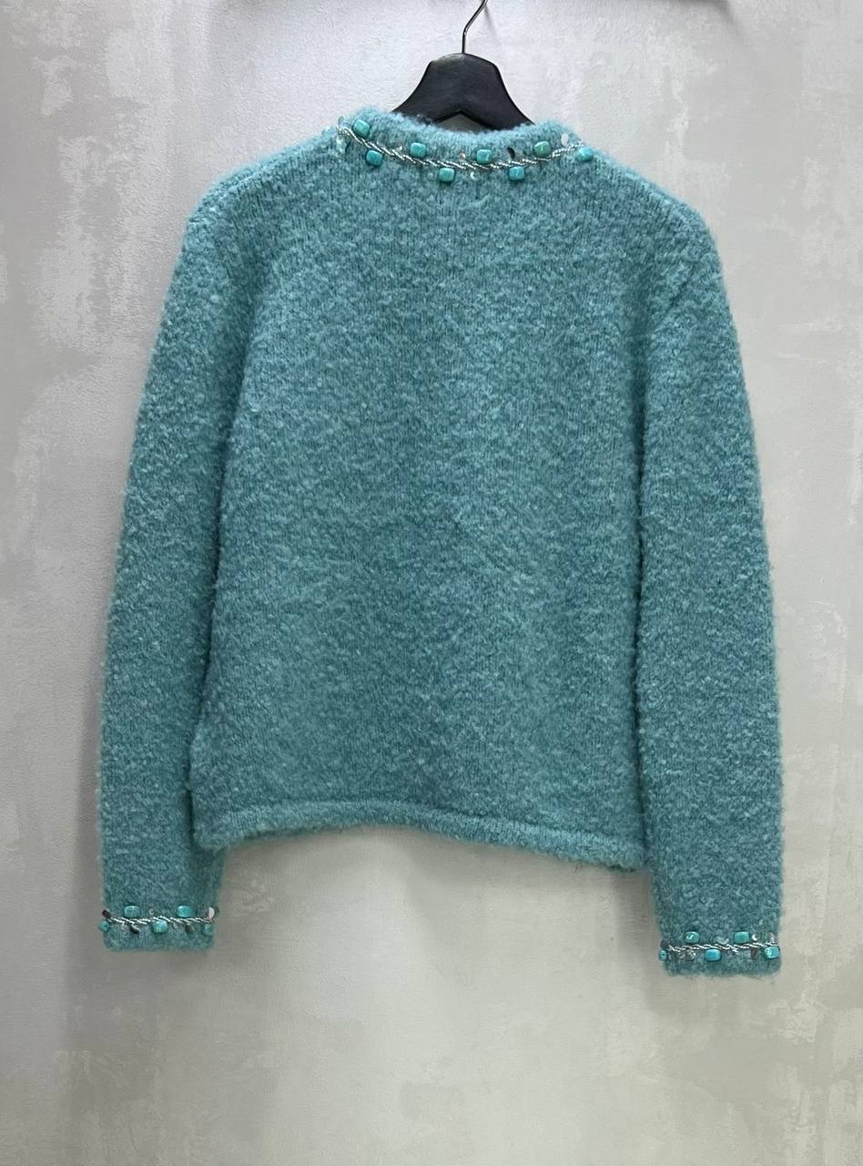 Этот элегантный кардиган от Chanel воплощает изысканность и стиль. Он станет ярким акцентом в гардеробе, добавляя образу неповторимый шарм.