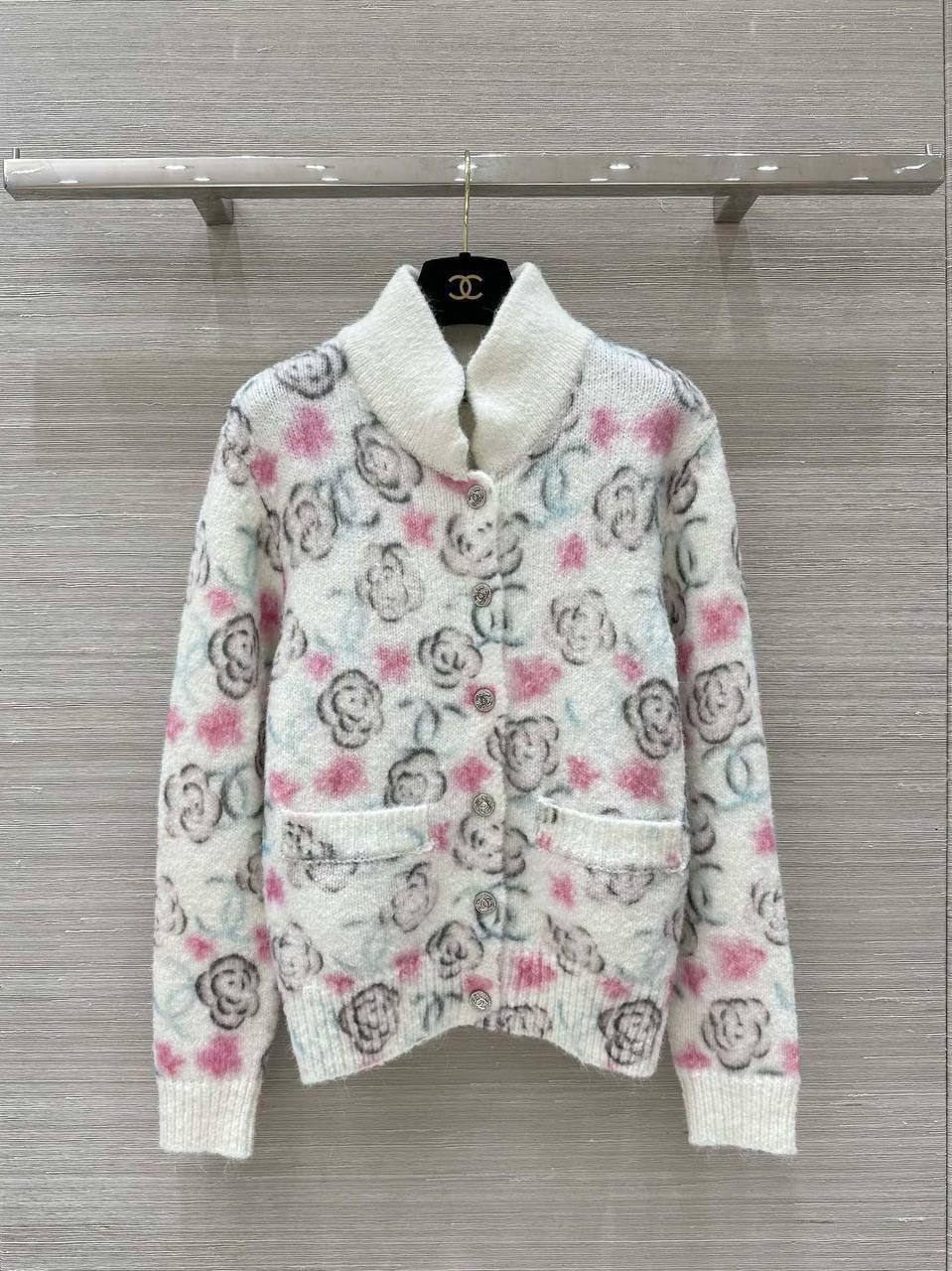 Кофта Chanel LUX-112811 выполнена в светлых тонах с цветочным узором. Это стильный предмет гардероба, идеально подходящий для создания женственных образов. Кофта декорирована пуговицами, что придает ей изысканность.