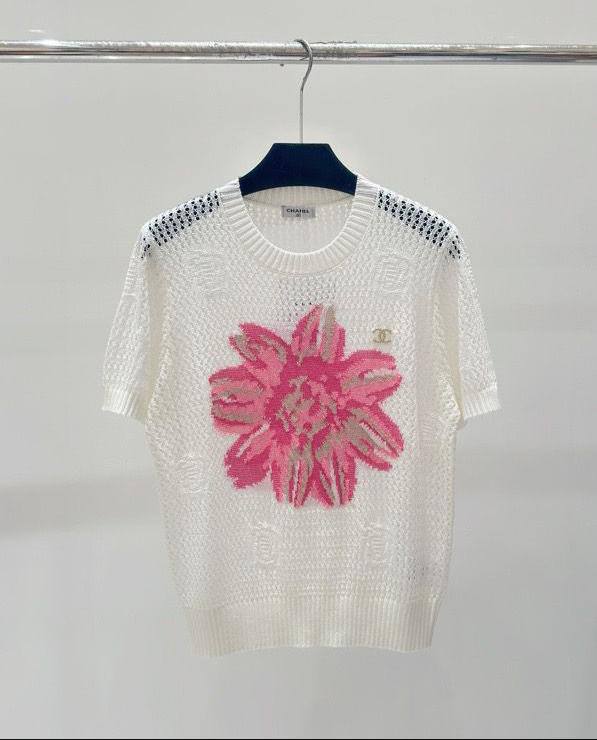 Кофта Chanel LUX-105543 — это стильная и элегантная вещь в белом цвете с цветочным принтом. Кофта выполнена в свободном стиле, что делает её идеальным выбором для создания повседневных и вечерних образов. Круглый вырез и короткий рукав придают модели современный вид.