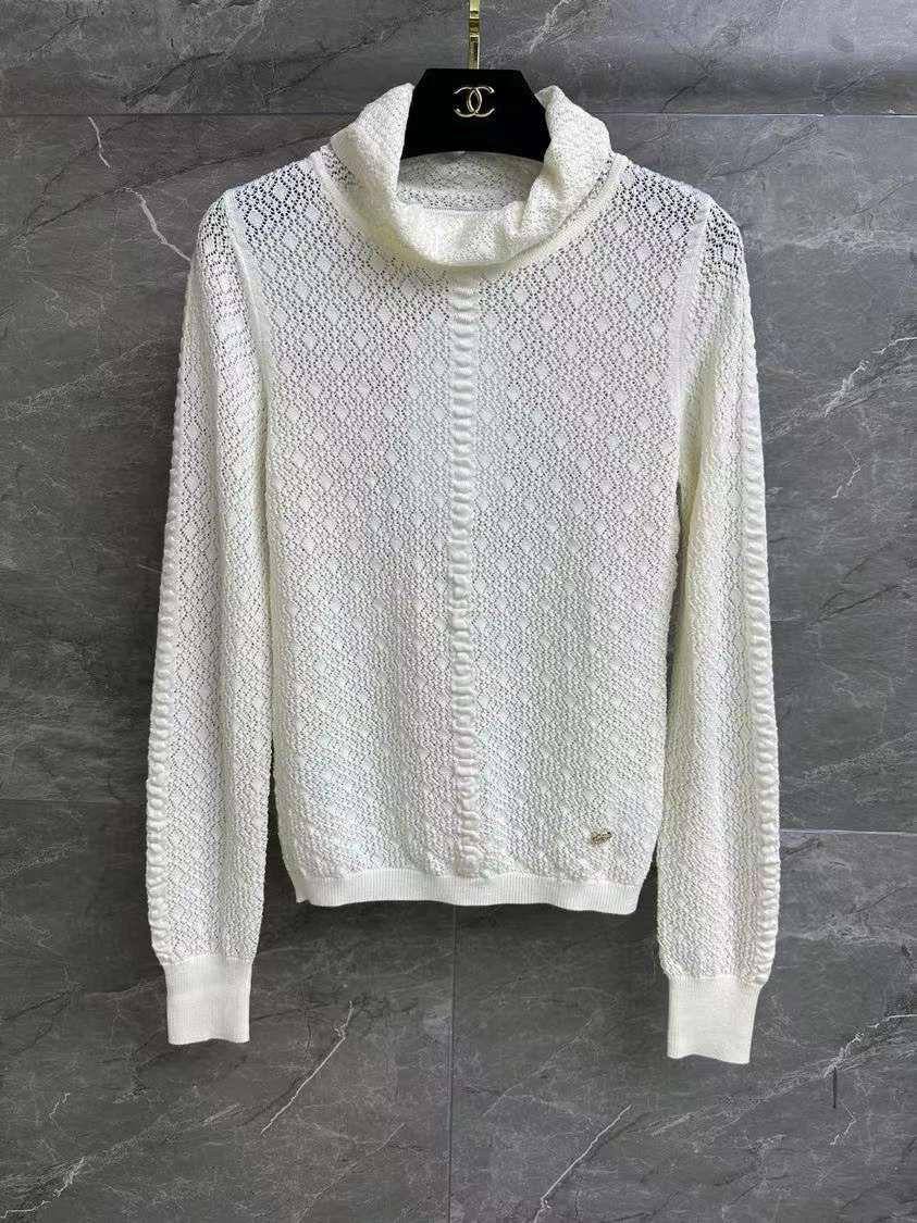 Кофта Chanel LUX-109719 представляет собой элегантный предмет гардероба, сочетающий в себе изысканность и комфорт. Она выполнена в классическом белом цвете, с высоким воротником и длинными рукавами. Текстура кофты имеет ажурный узор, что придает ей легкость и изящество.