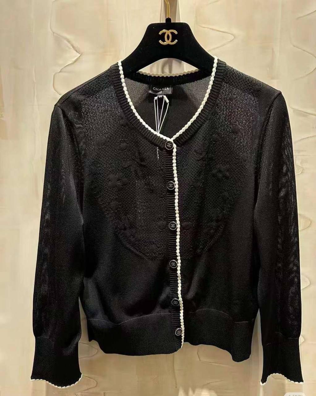 Кофта Chanel LUX-111095 - это элегантная черная кофта с длинными рукавами. Она имеет классический крой и украшена белой отделкой по краям, добавляющей контрастности и изысканности. Этот предмет гардероба отлично подходит для создания стильных и утонченных образов.
