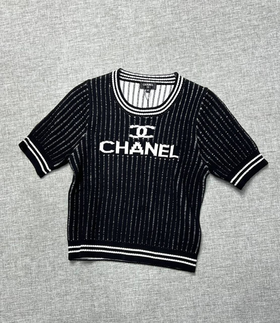 Кофта Chanel LUX-114405 — это стильная трикотажная кофта от известного бренда. Кофта выполнена в черном цвете с белыми полосками и логотипом бренда. Такая кофта станет отличным дополнением к вашему гардеробу.