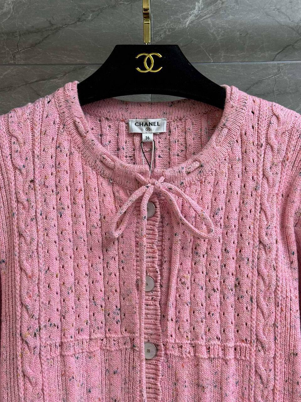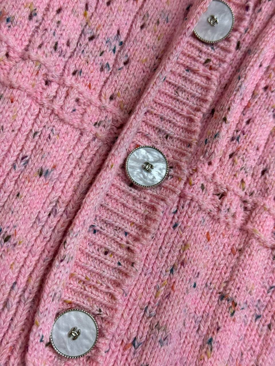Кофта Chanel LUX-118196 — это воплощение элегантности и изысканности. Розовая кофта с круглым вырезом, застегивается на пуговицы. Вязаная текстура создает неповторимый визуальный эффект, делая образ женственным и утонченным. Идеально подходит для создания стильных повседневных образов.