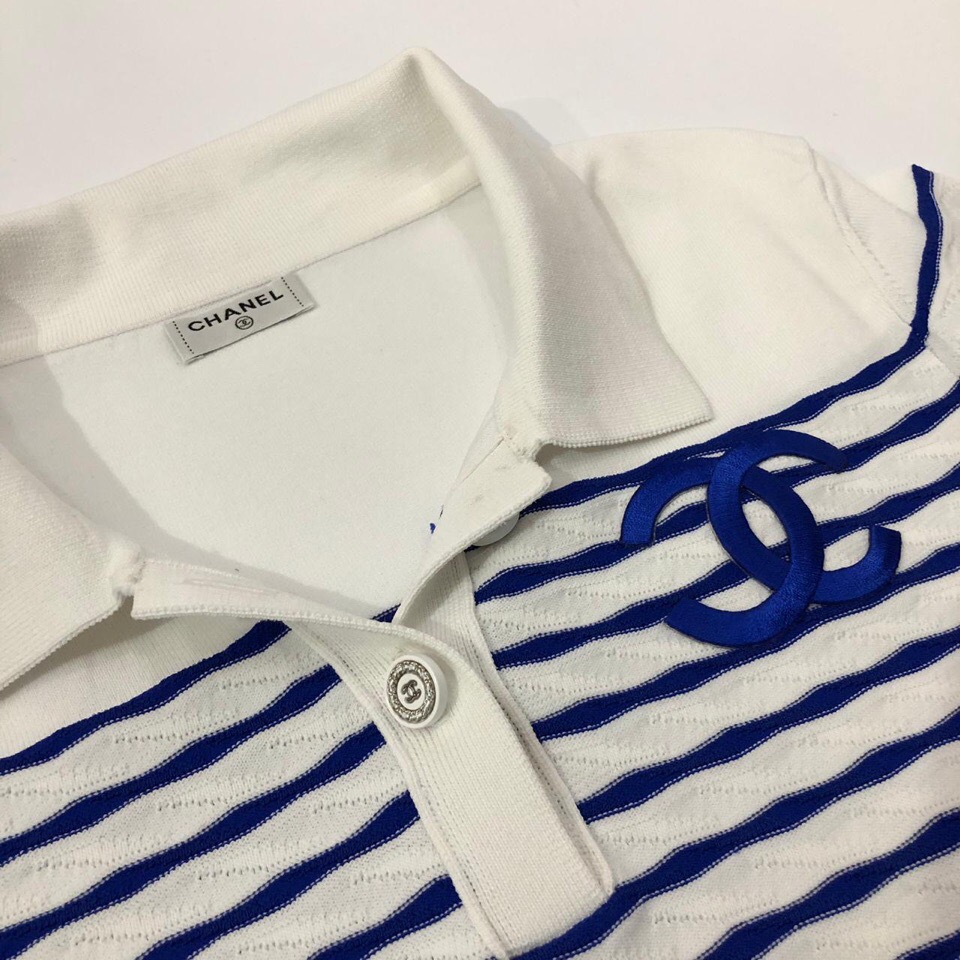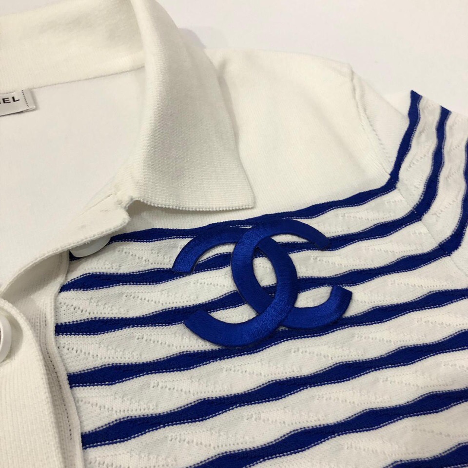 Кофта женская Chanel ОДЖ-1088 - это стильная и элегантная модель, выполненная в морской тематике. Классический воротник-поло и короткие рукава придают изделию спортивный шик, а контрастная полоска в сине-белых тонах создает эффектный образ. Декоративный логотип Chanel на груди подчеркивает изысканность бренда. Эта кофта прекрасно подойдет для создания расслабленных, но при этом утонченных повседневных образов.
