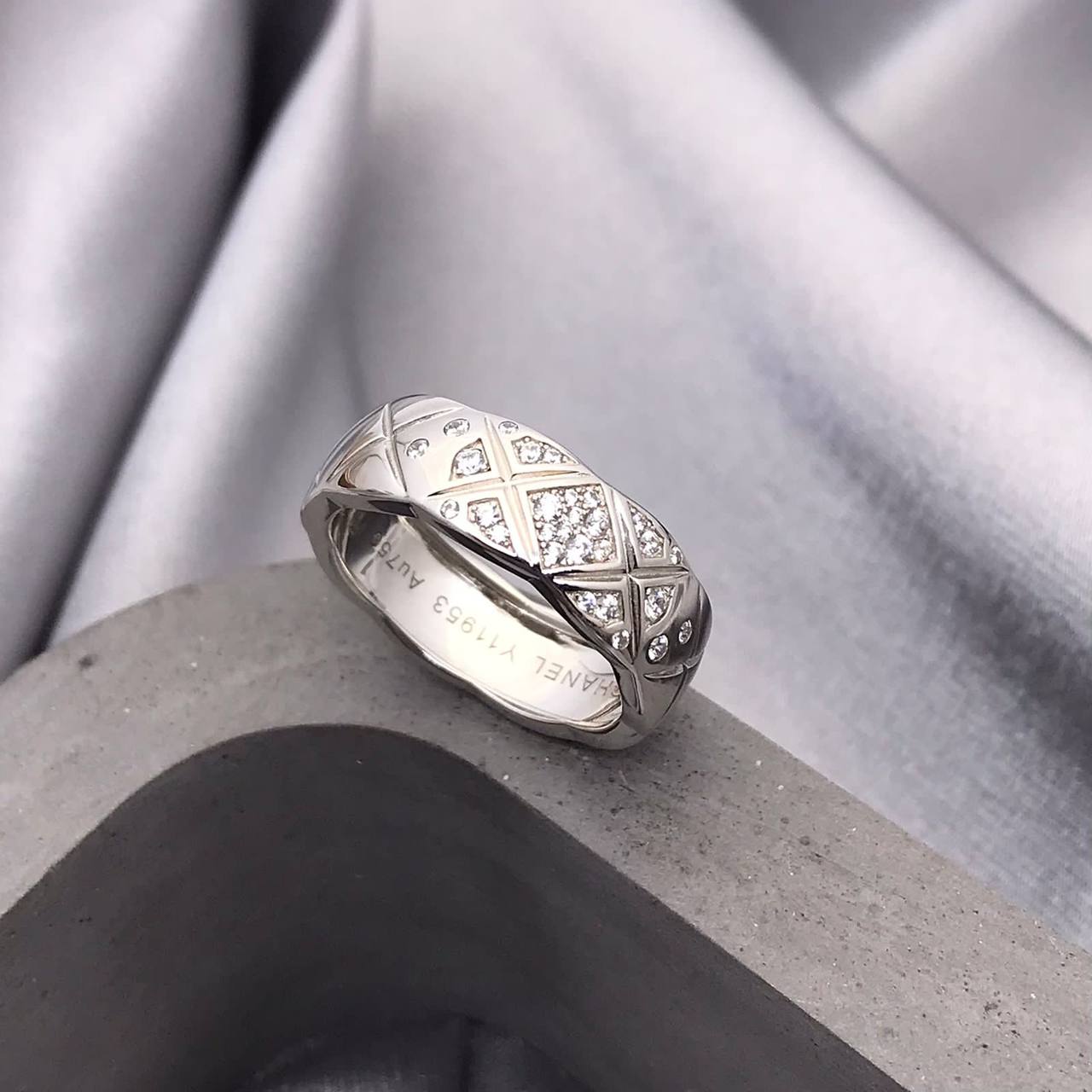 Кольцо Chanel LUX-79683 – это элегантное украшение, выполненное в классическом стиле. Серебристый цвет кольца создает эффектный блеск, а узор из ромбов и мерцающих камней придает ему изысканный вид. Оно станет прекрасным дополнением к любому образу.