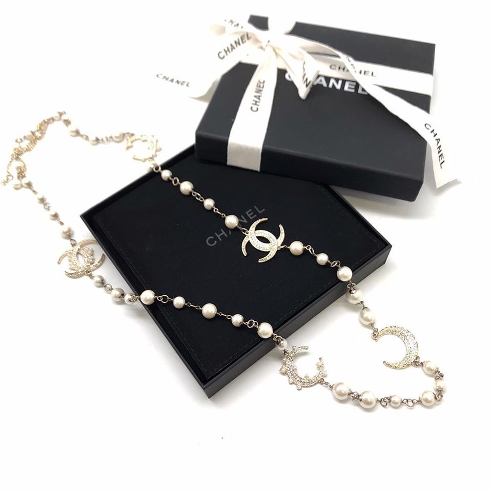 Это изысканное колье Chanel LUX-27917, выполненное в элегантном стиле, украсит любой образ. Центральным элементом является узнаваемый логотип Chanel, инкрустированный сверкающими кристаллами. Жемчужины различных размеров и изящные подвески в виде полумесяца добавляют изделию утонченности и роскоши. Это украшение идеально подойдет как для повседневного ношения, так и для особых случаев, придавая вашему стилю неповторимый шарм.