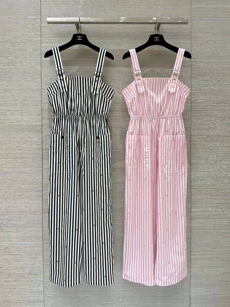 Комбинезон Chanel LUX-109037 – это стильный летний комбинезон в полоску, выполненный в классическом стиле. Яркая вертикальная полоска в сочетании с лаконичным кроем создают неповторимый образ. Идеально подходит для повседневной носки, прогулок или встреч с друзьями.