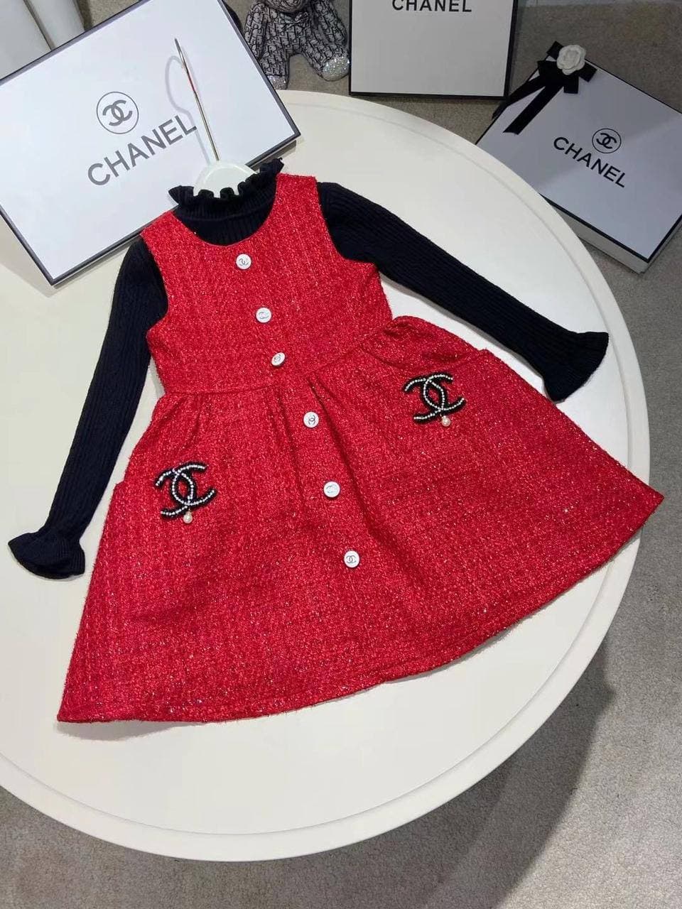 Комплект сарафан + водолазка Chanel LUX-59040 представляет собой элегантное решение в стиле бренда Chanel, идеально подходящее для создания изысканных детских образов. Сарафан выполнен в насыщенном красном цвете и дополнен культовыми деталями, такими как фирменная вышивка и пуговицы с логотипом, придавая ему роскошный вид. Водолазка в тон обеспечивает комфорт и завершает образ, делая его уместным как для повседневных выходов, так и для особых случаев.