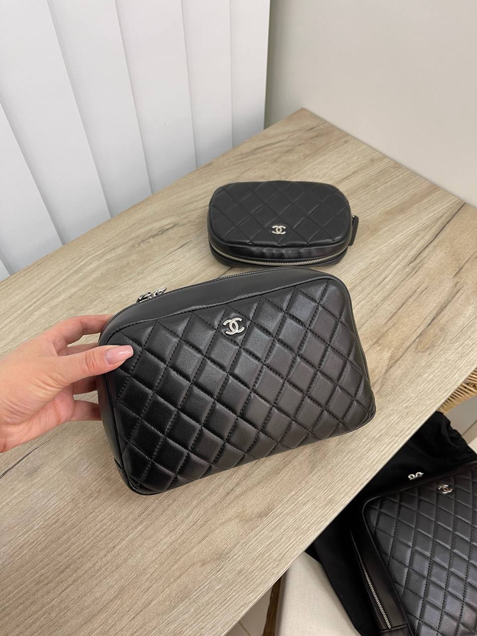 Эта черная стеганая косметичка Chanel — стильный и практичный аксессуар, идеально подходящий для хранения косметики и мелких предметов. Ее классический дизайн с ромбовидной прострочкой и узнаваемым логотипом бренда придает ей элегантный вид. Косметичка оснащена надежной молнией, обеспечивающей легкий доступ к содержимому.