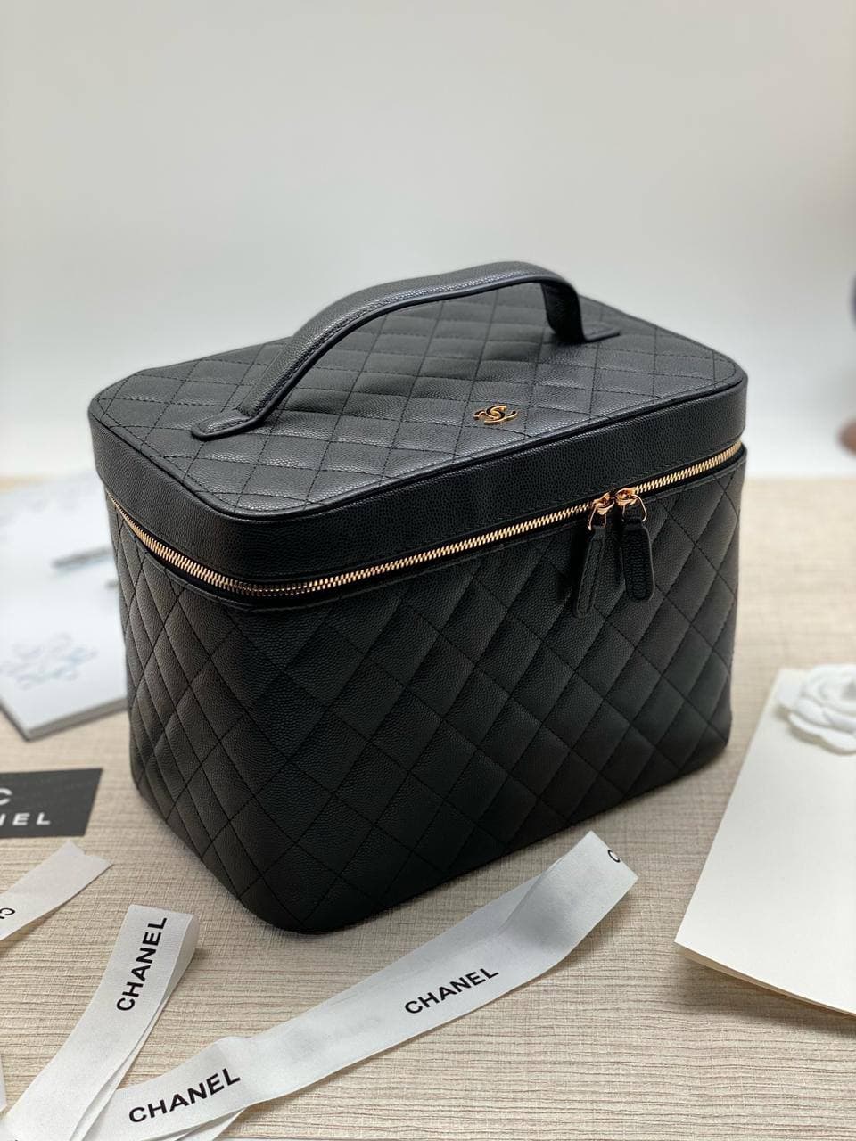 Эта косметичка Chanel LUX-60452 выполнена в классическом стеганом дизайне, который стал визитной карточкой бренда. Модель отличается элегантностью и лаконичностью, подчеркивая статус владельца. Благодаря вместительности и продуманной форме, она идеально подходит для хранения косметики и аксессуаров как в поездках, так и для ежедневного использования.