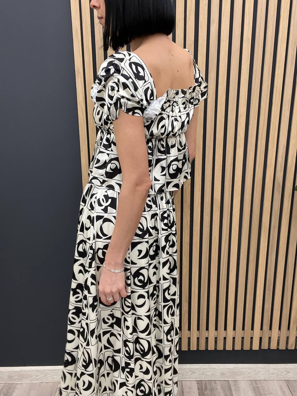 Костюм Chanel LUX-104583 представляет собой стильный наряд для элегантного образа. Костюм состоит из топа и юбки, выполненных в черно-белой цветовой гамме с характерным принтом. Этот костюм идеально подойдет для различных мероприятий, от деловых встреч до вечерних выходов.