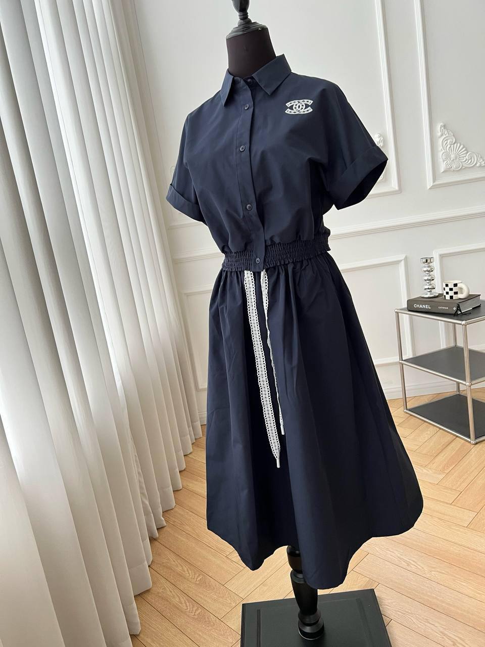 Chanel Костюм LUX-120833 – это элегантный и стильный комплект, состоящий из рубашки и юбки. Выполненный в темно-синем цвете, он подчеркнет вашу женственность и добавит изысканности в любой образ.