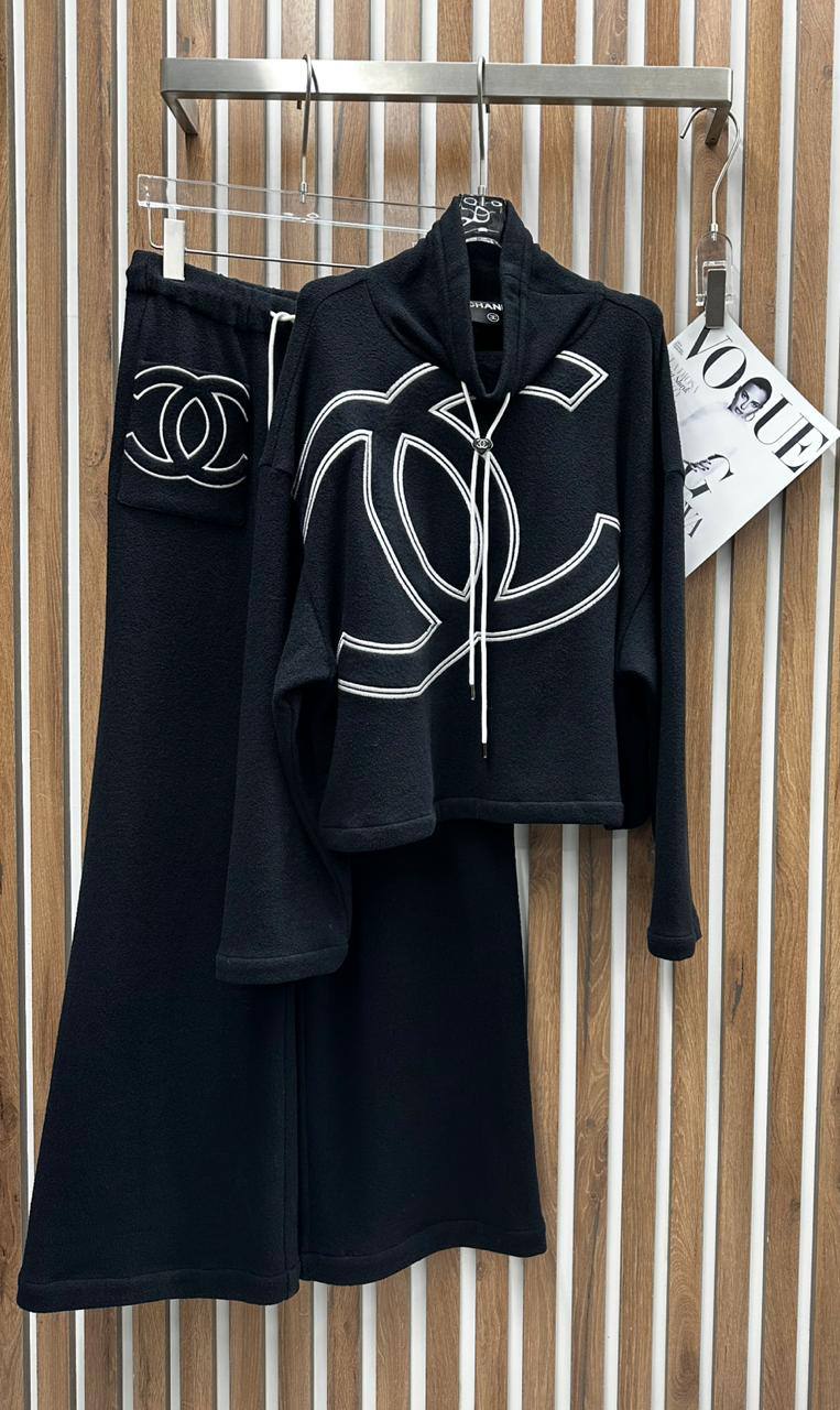 Стильный черный костюм Chanel LUX-124650 — это воплощение элегантности и комфорта. Он идеально подходит для повседневной носки и создания модных образов.