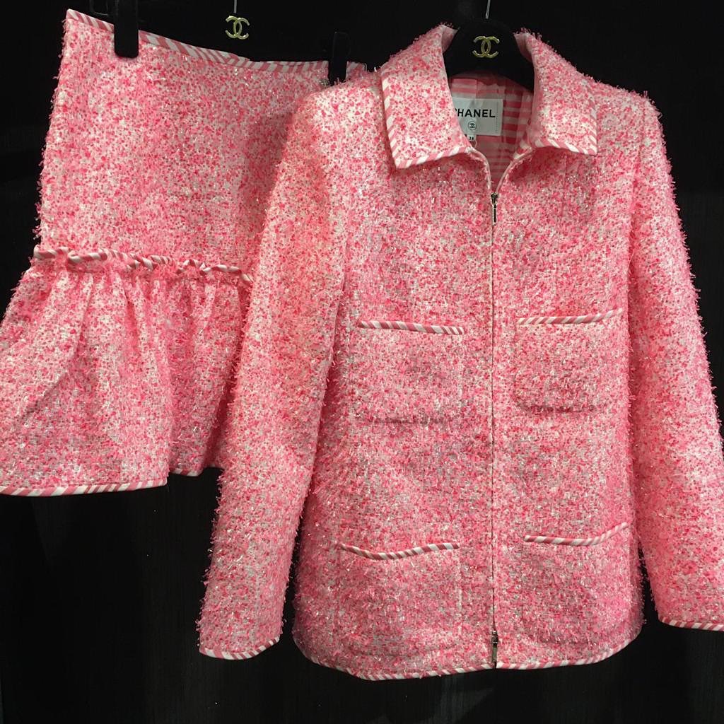 Представленный костюм Chanel LUX-41891 — это воплощение элегантности и женственности, выполненный в нежном розовом оттенке. Комплект, состоящий из жакета и юбки, идеально подходит для создания изысканных образов для особых случаев или деловых встреч, подчеркивая утонченный вкус своей обладательницы.