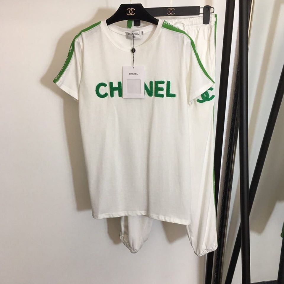 Спортивный костюм Chanel LUX-30701 представляет собой стильный и комфортный комплект, выполненный в классическом белом цвете с яркими зелеными акцентами. Костюм идеально подходит для создания расслабленных, но элегантных образов.