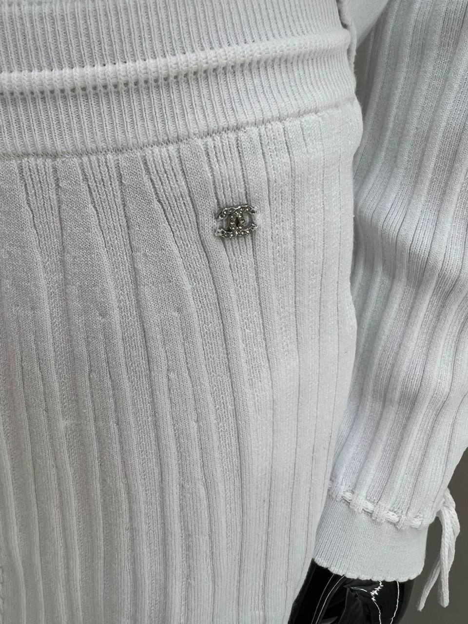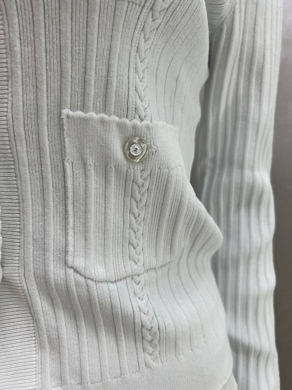 Костюм женский Chanel LUX-118892 - это воплощение элегантности и стиля. Комплект состоит из кардигана и юбки, выполненных в белом цвете. Текстура ткани создает интересный визуальный эффект. Костюм идеально подходит для создания изысканных образов.