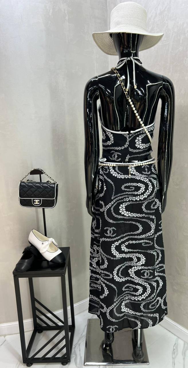 Костюм женский Chanel LUX-119599 представляет собой стильный и элегантный наряд от знаменитого бренда. Костюм выполнен в классическом стиле с модными элементами, что делает его актуальным для различных случаев. Чёрный цвет с белым принтом придает костюму изысканность и неповторимый шарм.