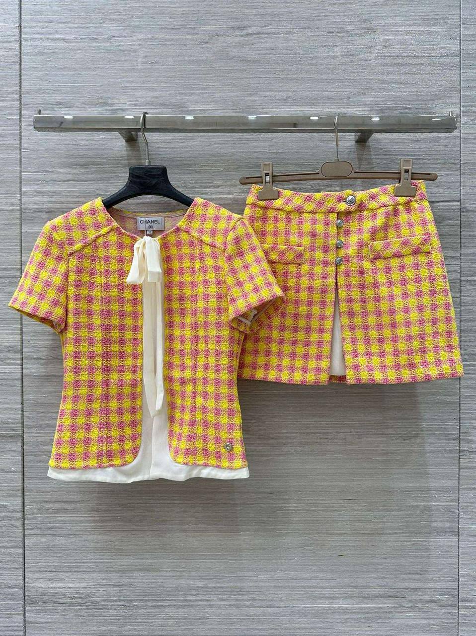 Костюм женский Chanel LUX-120672 - это элегантный и стильный комплект, выполненный в яркой цветовой гамме. Он подчеркнет вашу индивидуальность и добавит нотку роскоши в повседневный образ.