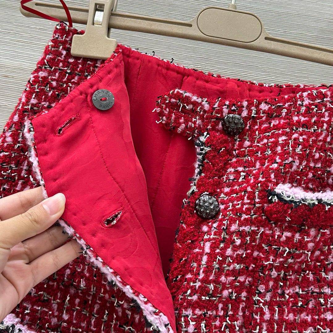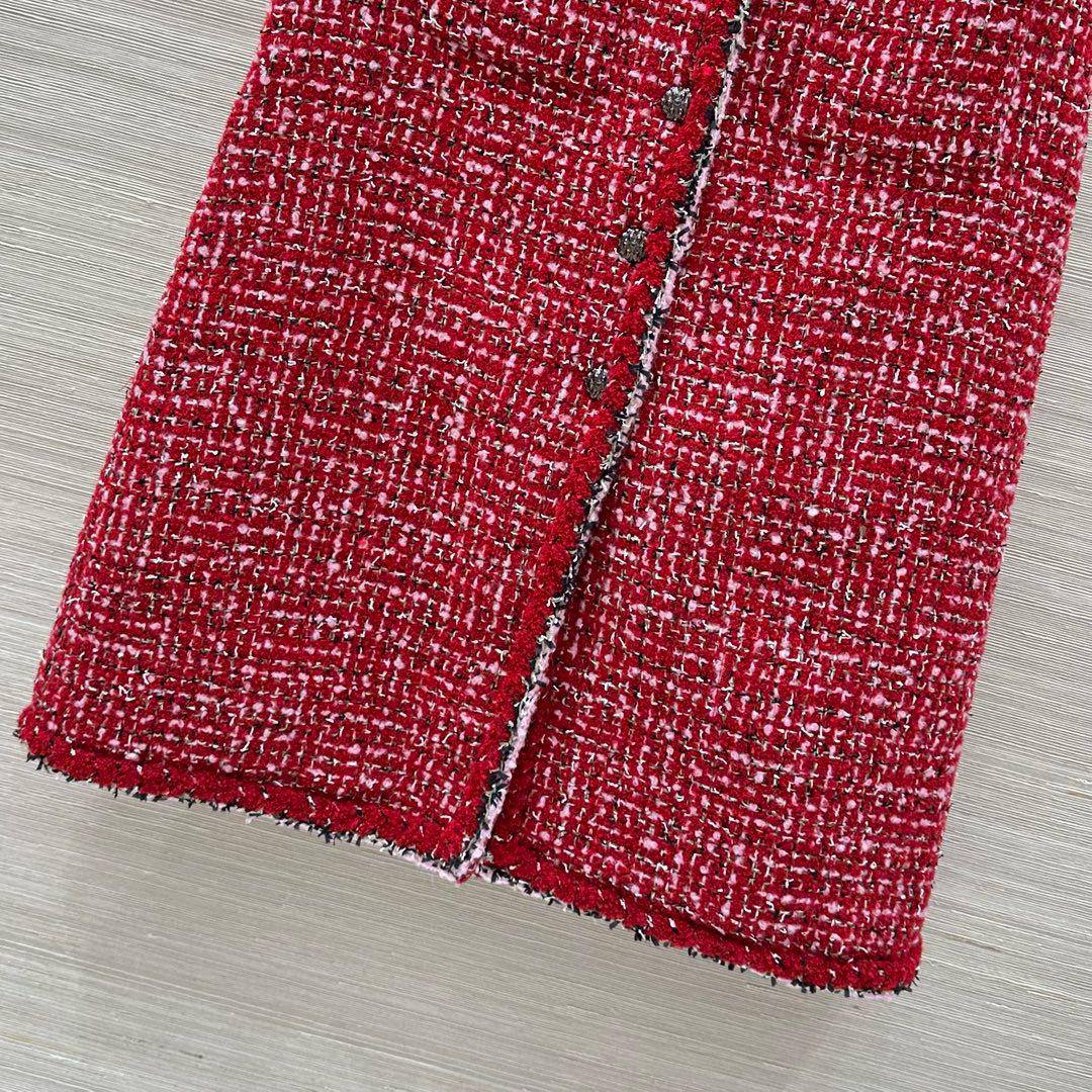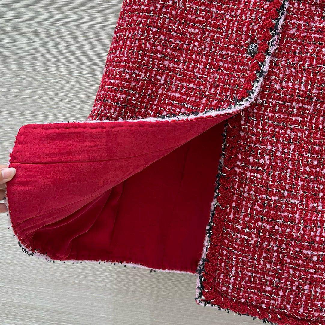 Этот элегантный женский костюм от Chanel – воплощение классического стиля и изысканности. Костюм, выполненный в красном цвете с контрастной отделкой, состоит из жакета и юбки. Идеальный выбор для создания элегантного и запоминающегося образа.