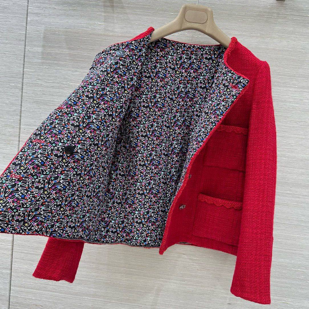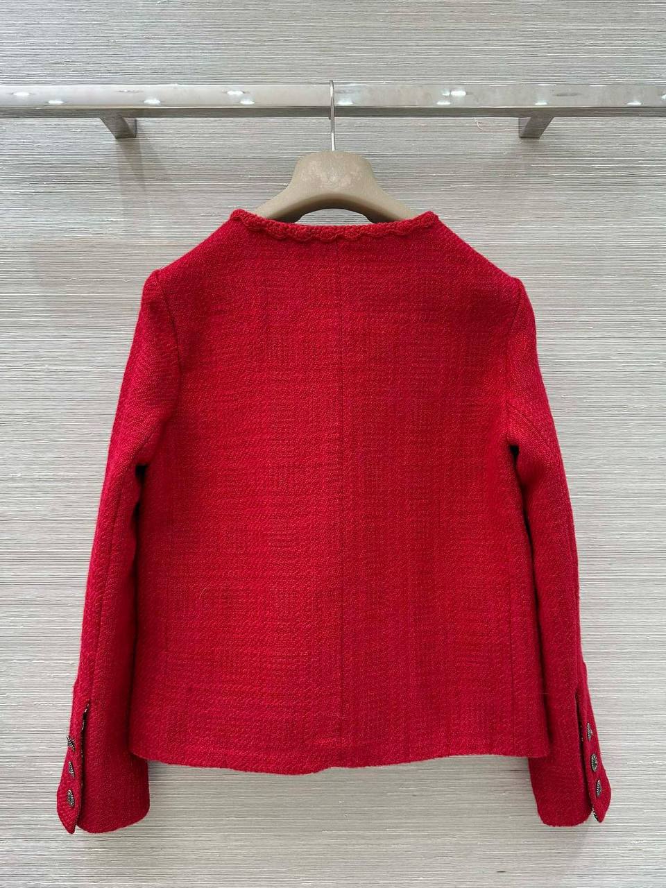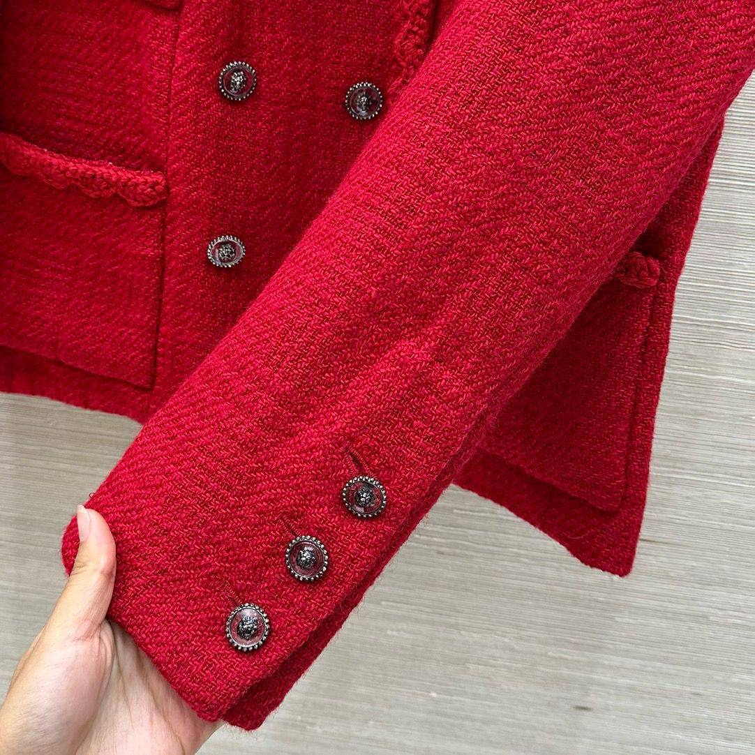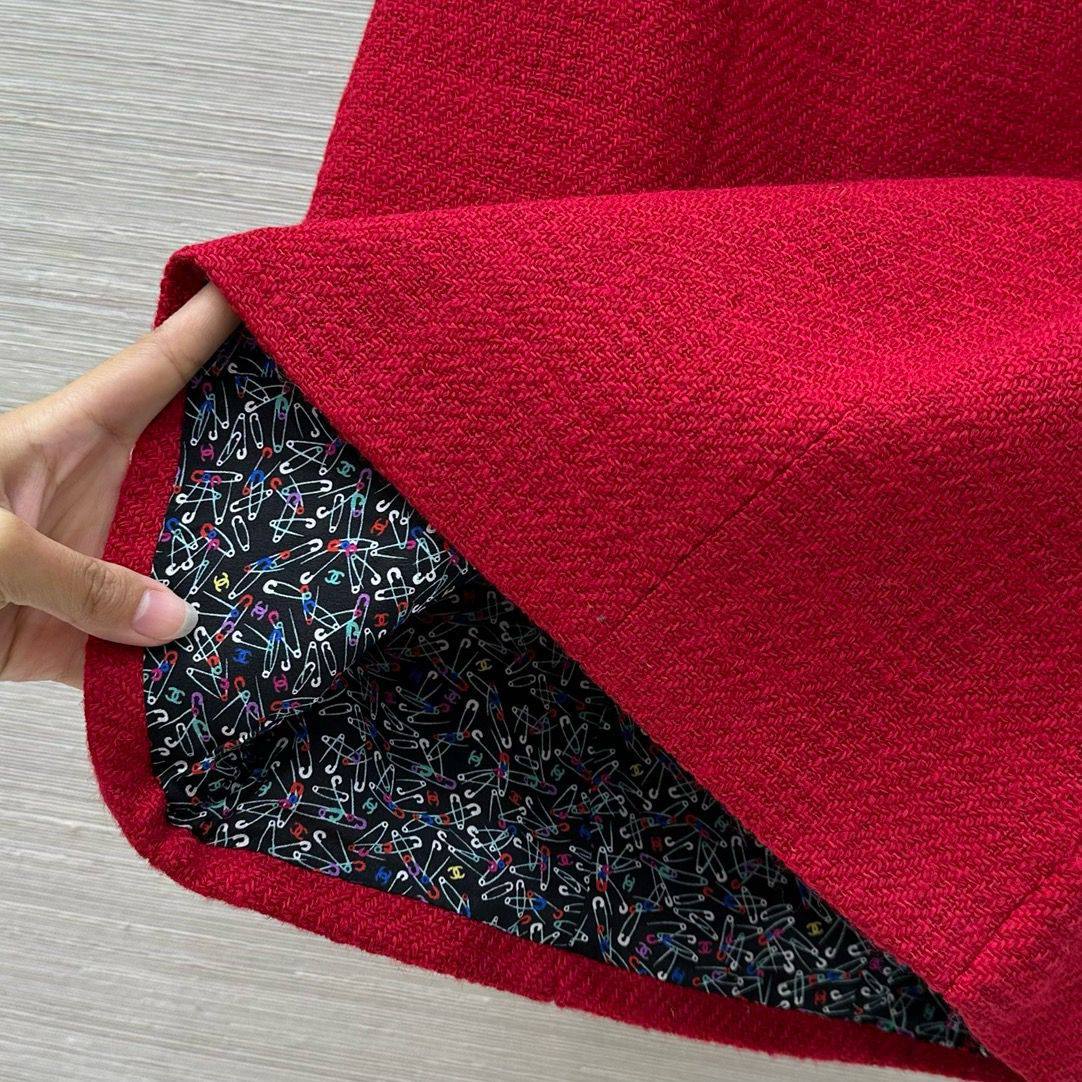 Этот женский костюм от Chanel – воплощение элегантности и стиля. Яркий красный цвет и классический твидовый материал делают его заметным и запоминающимся.