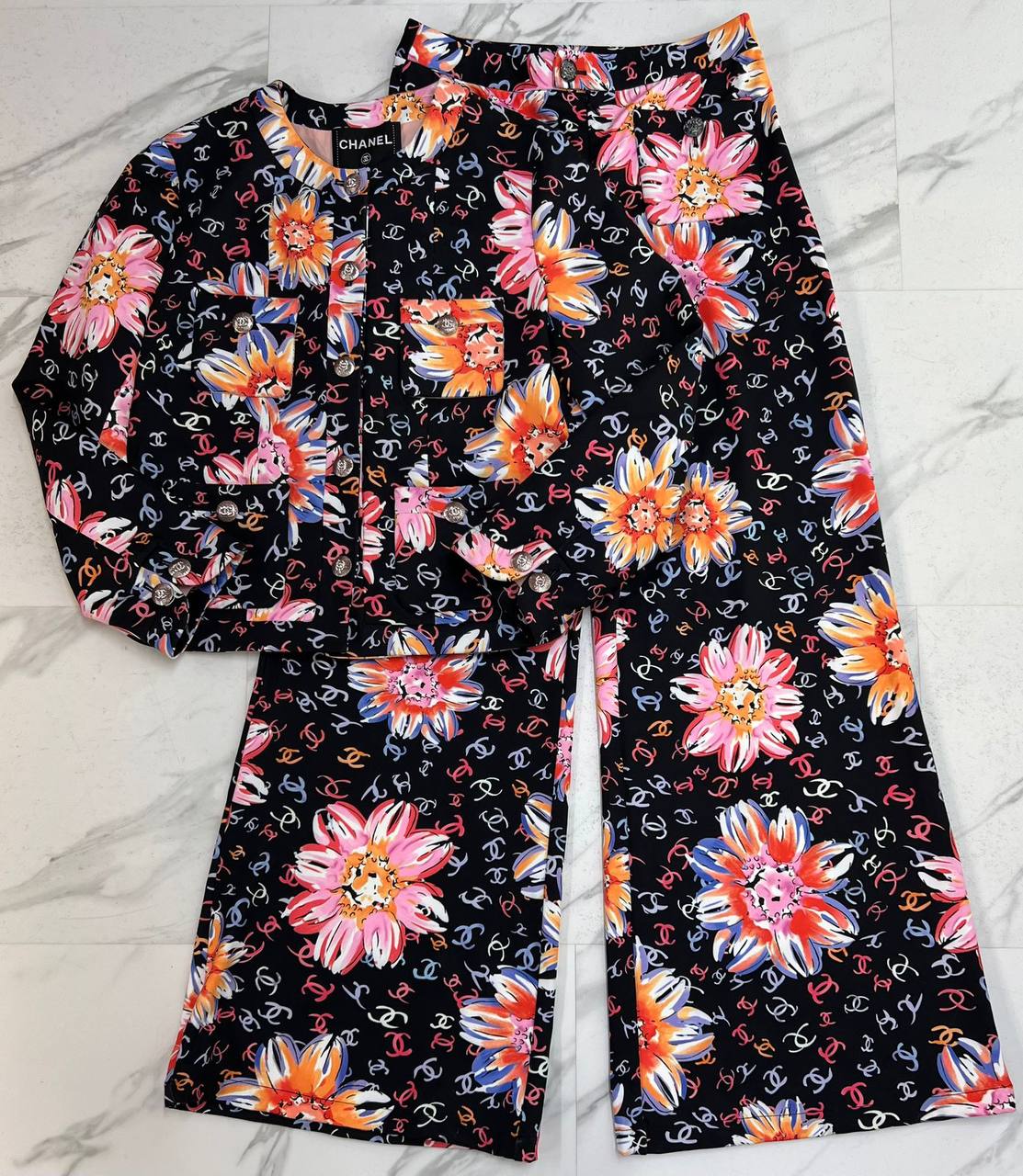 Костюм женский Chanel LUX-131853 представляет собой стильный комплект с ярким цветочным принтом. Этот костюм добавит изюминку в гардероб и подойдет для создания эффектных образов.