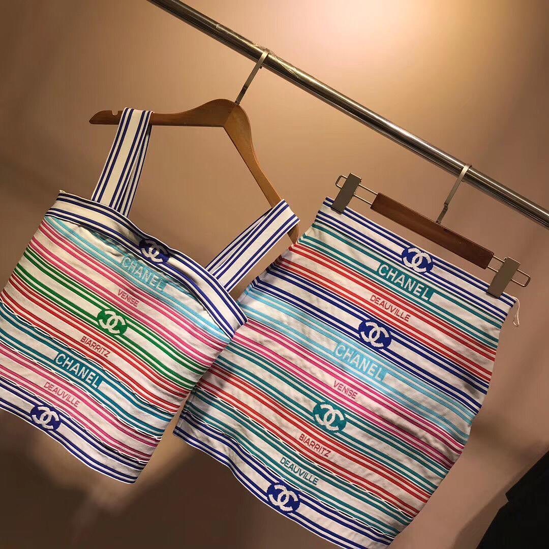 Представляем вам яркий и стильный женский костюм Chanel LUX-32046, состоящий из сумки и юбки. Этот комплект отличается оригинальным дизайном в разноцветную полоску, украшенным узнаваемым логотипом бренда и названиями знаменитых городов. Костюм Chanel LUX-32046 идеально подойдет для создания модного летнего образа.