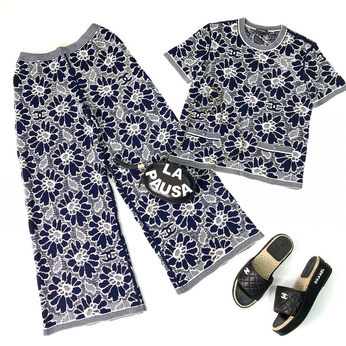 Женский костюм Chanel LUX-34145 – это изысканный выбор для создания элегантных образов. Комплект, состоящий из брюк и топа, выполнен в темно-синем цвете с утонченным белым цветочным узором, который придает ему особый шарм. Стиль костюма идеально подходит для особых случаев или для тех, кто ценит утонченность и роскошь в повседневных нарядах.