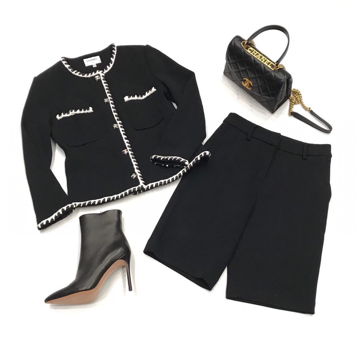 Женский костюм Chanel LUX-34956 представлен в классическом черном цвете, выполнен в элегантном стиле, характерном для дома Chanel. Комплект состоит из приталенного жакета с контрастной отделкой и двубортной застежкой, а также прямых брюк. Этот костюм идеально подходит для создания изысканных образов.