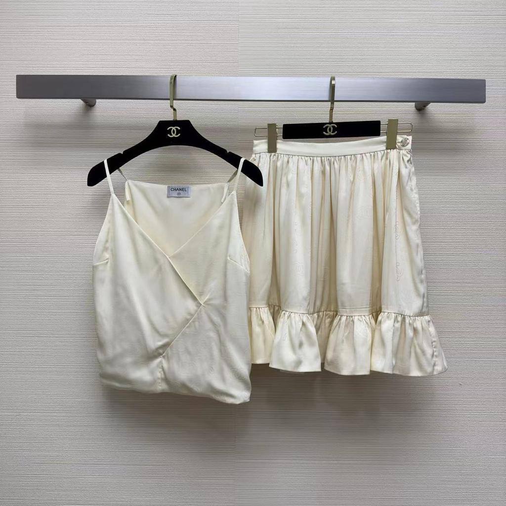 Костюм женский Chanel LUX-91613 - это элегантный ансамбль, который состоит из топа и юбки. Комплект выполнен в кремовом цвете, имеет гладкую текстуру и подходит для создания утонченного образа. Этот костюм идеально подойдет для летних прогулок или вечерних мероприятий.