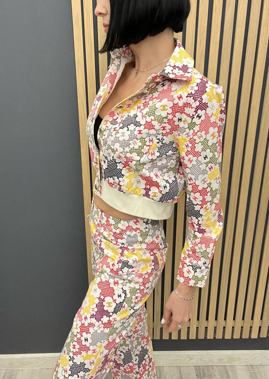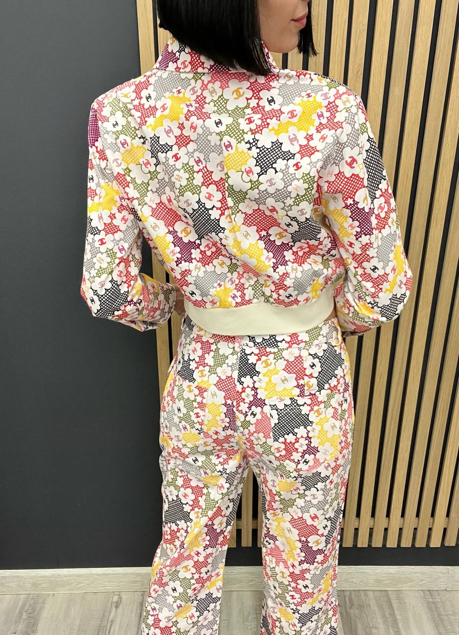 Костюм женский Chanel LUX-104323 — это яркий и стильный комплект, который сочетает в себе изысканность и современный дизайн. Костюм состоит из пиджака и брюк с цветочным принтом, идеально подходящего для создания запоминающегося образа. Он станет отличным выбором для тех, кто ценит элегантность и хочет выделиться.