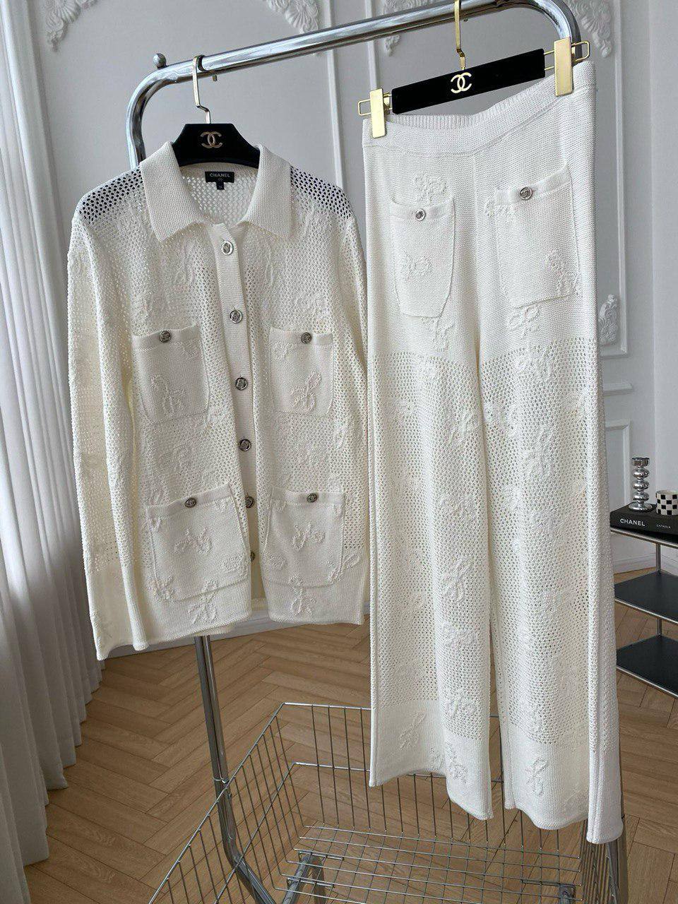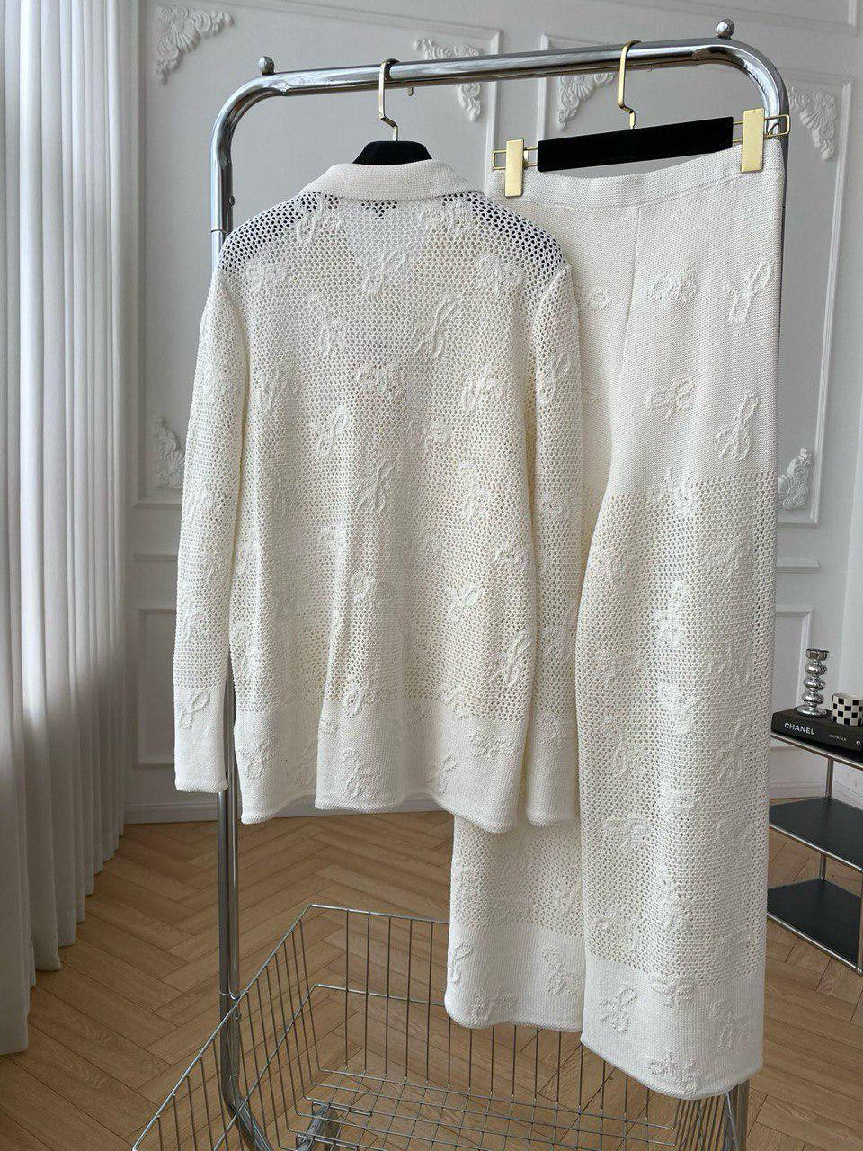 Костюм женский Chanel LUX-107679 – это элегантный костюм в стиле casual, который идеально подходит для повседневной носки. Белый цвет костюма создает ощущение легкости и свежести. Текстура ткани добавляет изделию изысканности.