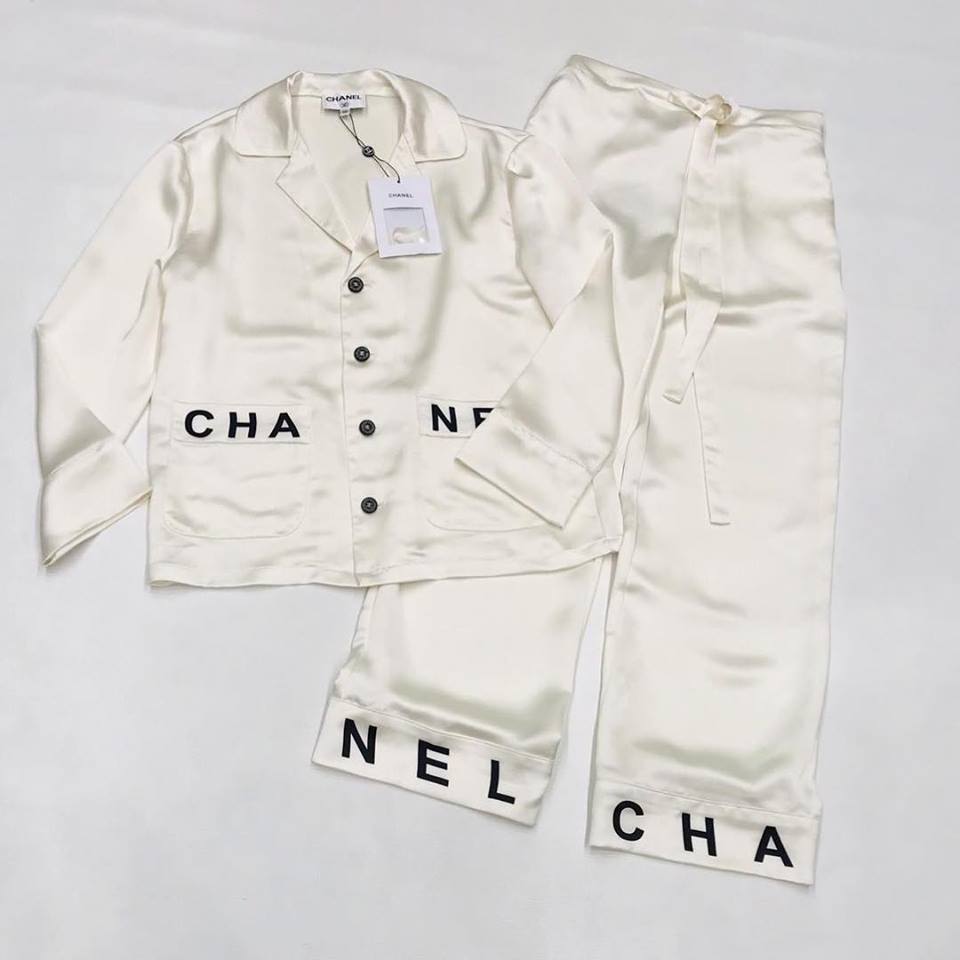 Этот женский брючный костюм Chanel LUX-11532 выполнен в элегантном кремовом цвете, имитирующем шелк. Комплект состоит из рубашки с отложным воротником, нагрудными карманами и брюк прямого кроя на поясе-шнурке. Оригинальный дизайн дополнен контрастной надписью "CHANEL" на карманах рубашки и по нижнему краю брюк. Костюм выглядит роскошно и стильно, подчеркивая изысканный вкус обладательницы.