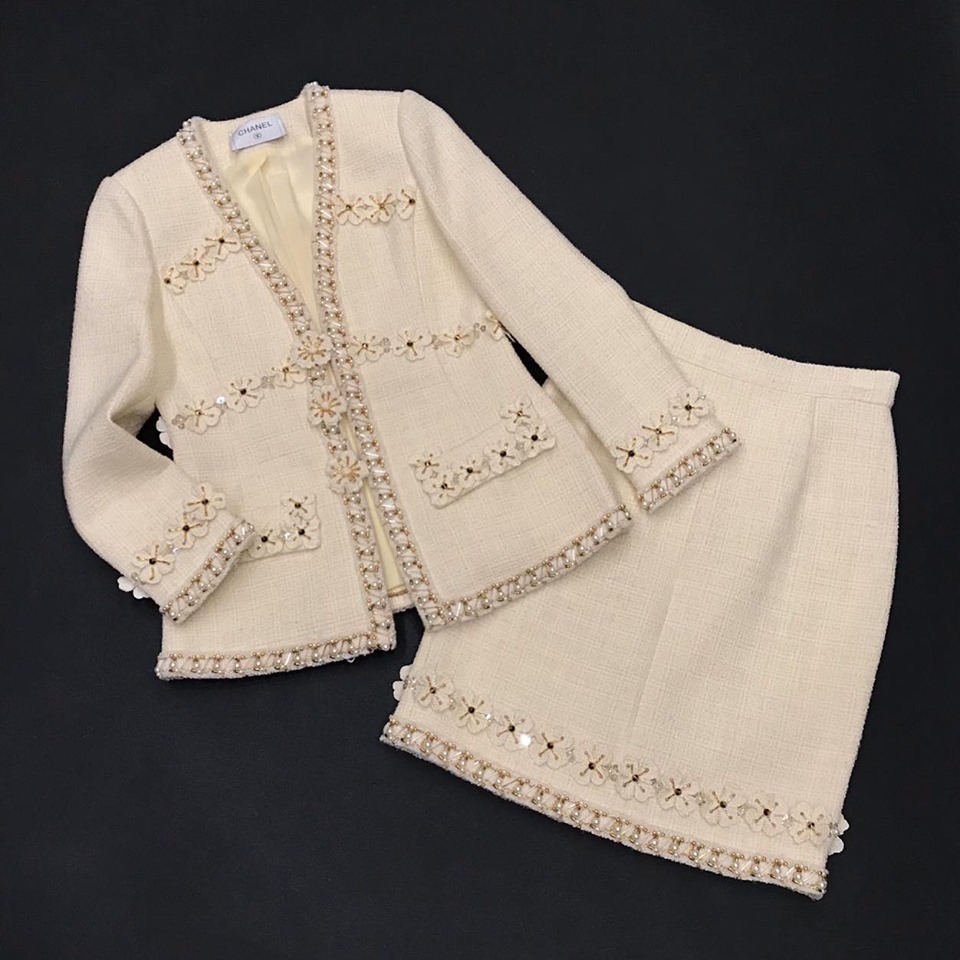 Костюм женский юбочный Chanel LUX-22023 представляет собой элегантный комплект, состоящий из жакета и юбки. Модель выполнена в классическом стиле, характерном для бренда Chanel, с акцентом на изысканные детали и высокое качество исполнения. Костюм идеально подойдет для создания утонченных образов для особых случаев, деловых встреч или повседневного шика.
