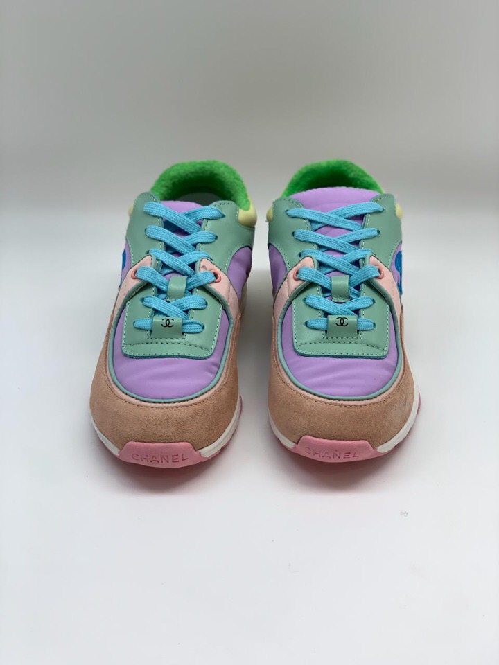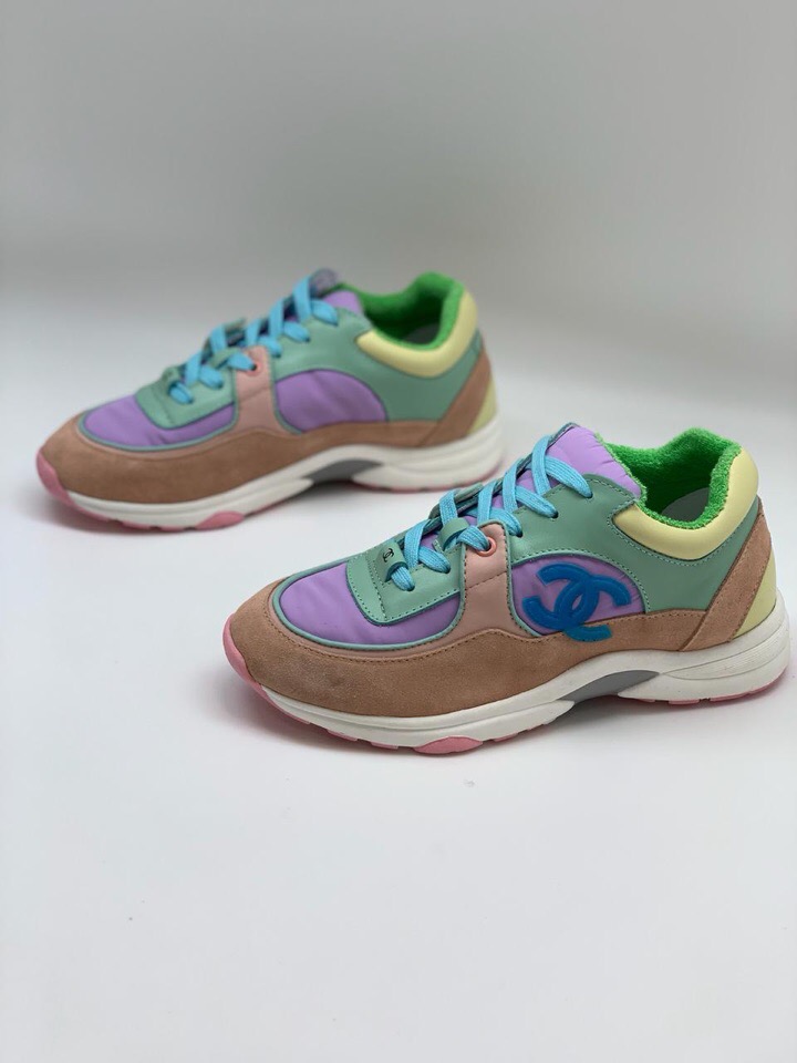 Эти женские кроссовки Chanel LUX-8271 представляют собой стильное сочетание спортивного дизайна и узнаваемого бренда. Яркая цветовая палитра, включающая бежевый, светло-зеленый, лавандовый, розовый и желтый оттенки, делает их выразительным акцентом в любом образе. Знаменитый логотип Chanel, выполненный в синем цвете, придает обуви эксклюзивности.