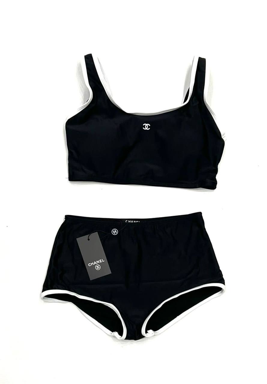 Купальник Chanel LUX-68641 представляет собой стильный комплект, состоящий из топа и шорт, выполненный в классическом черном цвете. Этот набор излучает элегантность и утонченность, характерные для бренда Chanel. Дизайн включает контрастную белую окантовку, которая добавляет изделию изысканности. Этот купальник идеально подойдет для создания модного пляжного образа.