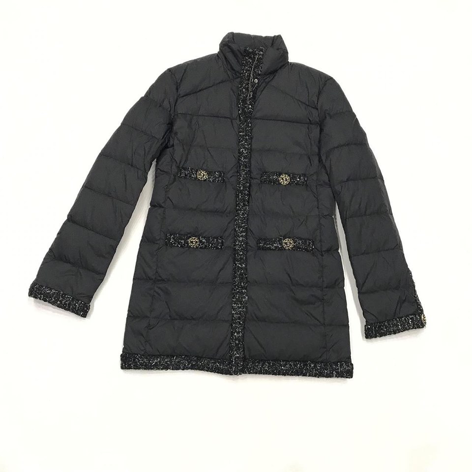 Chanel куртка женская LUX-20725 представляет собой элегантную модель, выполненную в классическом стиле бренда. Эта стеганая куртка черного цвета с контрастной отделкой вдоль застежки и по краям карманов выглядит изысканно и утонченно. Небольшие золотистые элементы и узнаваемый декор придают ей особый шарм, делая эту куртку идеальным выбором для создания стильных образов.