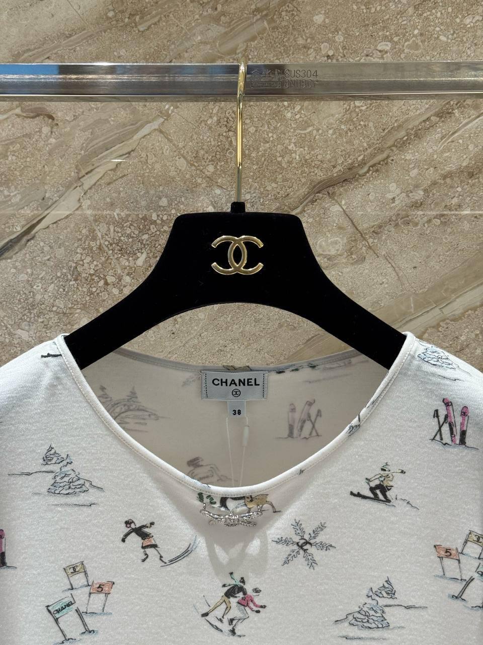 Лонгслив Chanel LUX-127343 выполнен в нежном, светлом оттенке и украшен оригинальными рисунками на тему зимнего отдыха. Идеальный выбор для создания стильного и непринужденного образа.