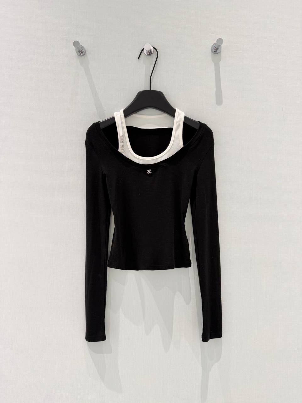 Лонгслив Chanel LUX-130476 — это стильный элемент женского гардероба, который сочетает в себе элегантность и комфорт. Модель выполнена в классическом черном цвете и дополнена изысканной деталью в виде логотипа бренда.