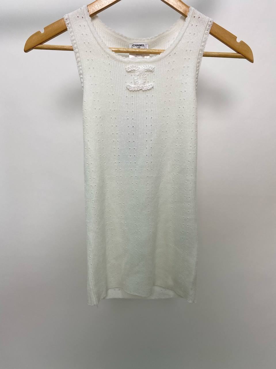 Белая майка Chanel LUX-52353 – это элегантное и утонченное дополнение к гардеробу, сочетающее в себе классический стиль и современный комфорт. Эта модель прекрасно подойдет для создания изысканных образов, подчеркивая вашу индивидуальность.