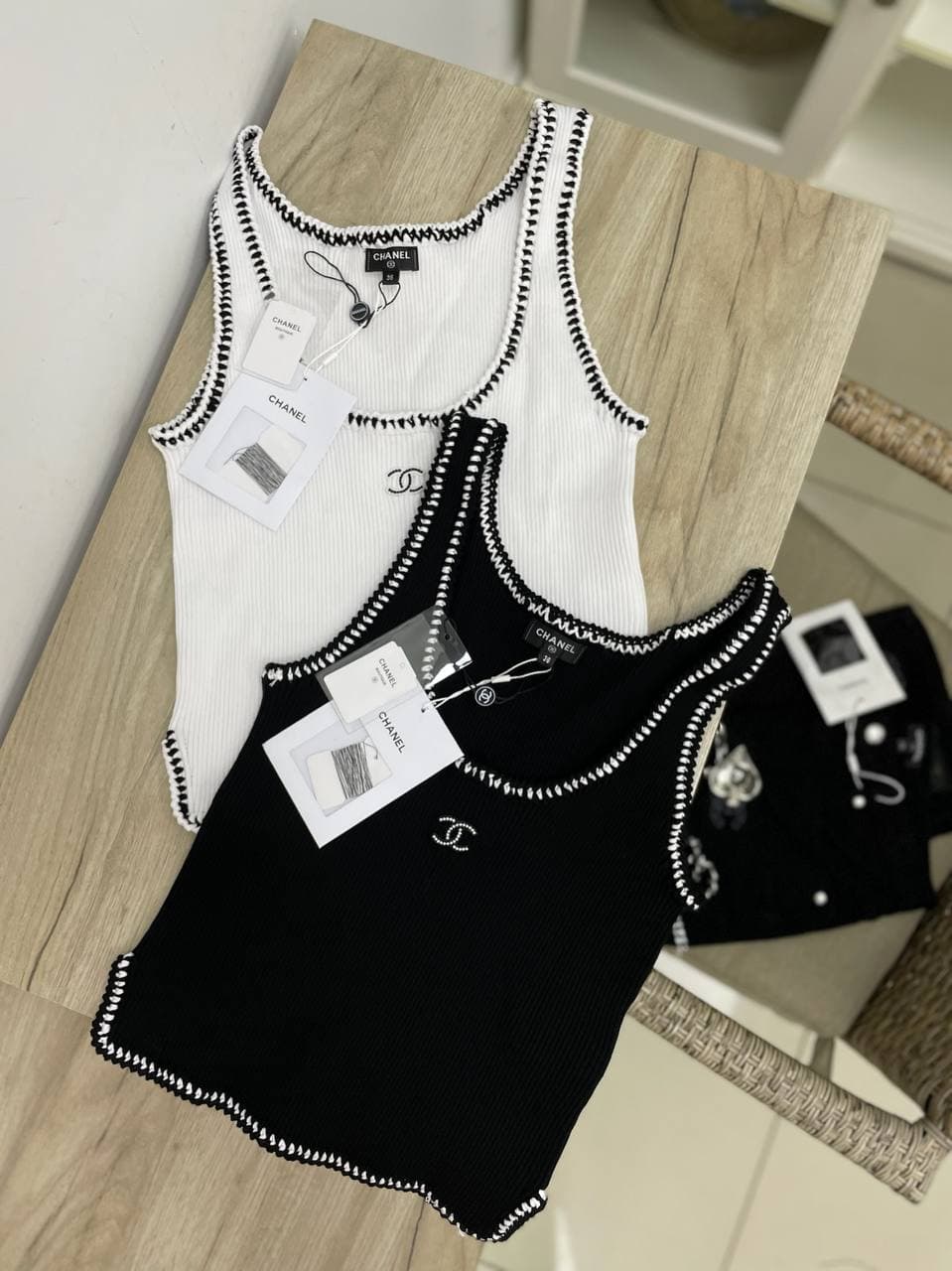 Представленная майка Chanel LUX-61426 — это стильный базовый элемент гардероба, выполненный в классическом черном цвете. Ее лаконичный дизайн с контрастной отделкой по краям горловины и пройм делает ее элегантным выбором для создания утонченных образов. Майка идеально подходит для повседневного ношения, сочетая в себе комфорт и актуальность.