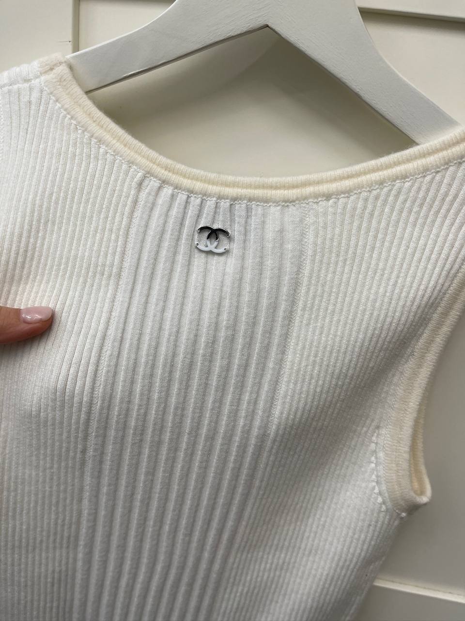 Майка Chanel LUX-114408 представляет собой изысканный предмет гардероба, сочетающий в себе элегантность и комфорт. Белый цвет майки с бежевыми акцентами подчеркивает ее изысканность. Идеально подходит для создания стильных образов в различных ситуациях.