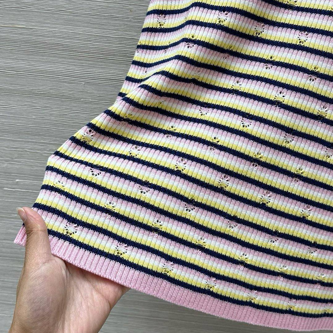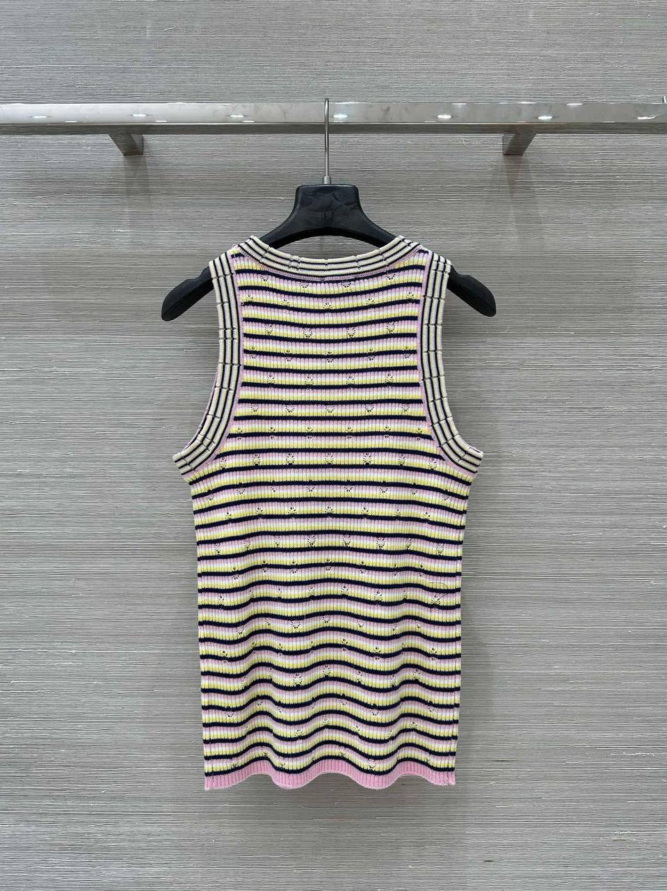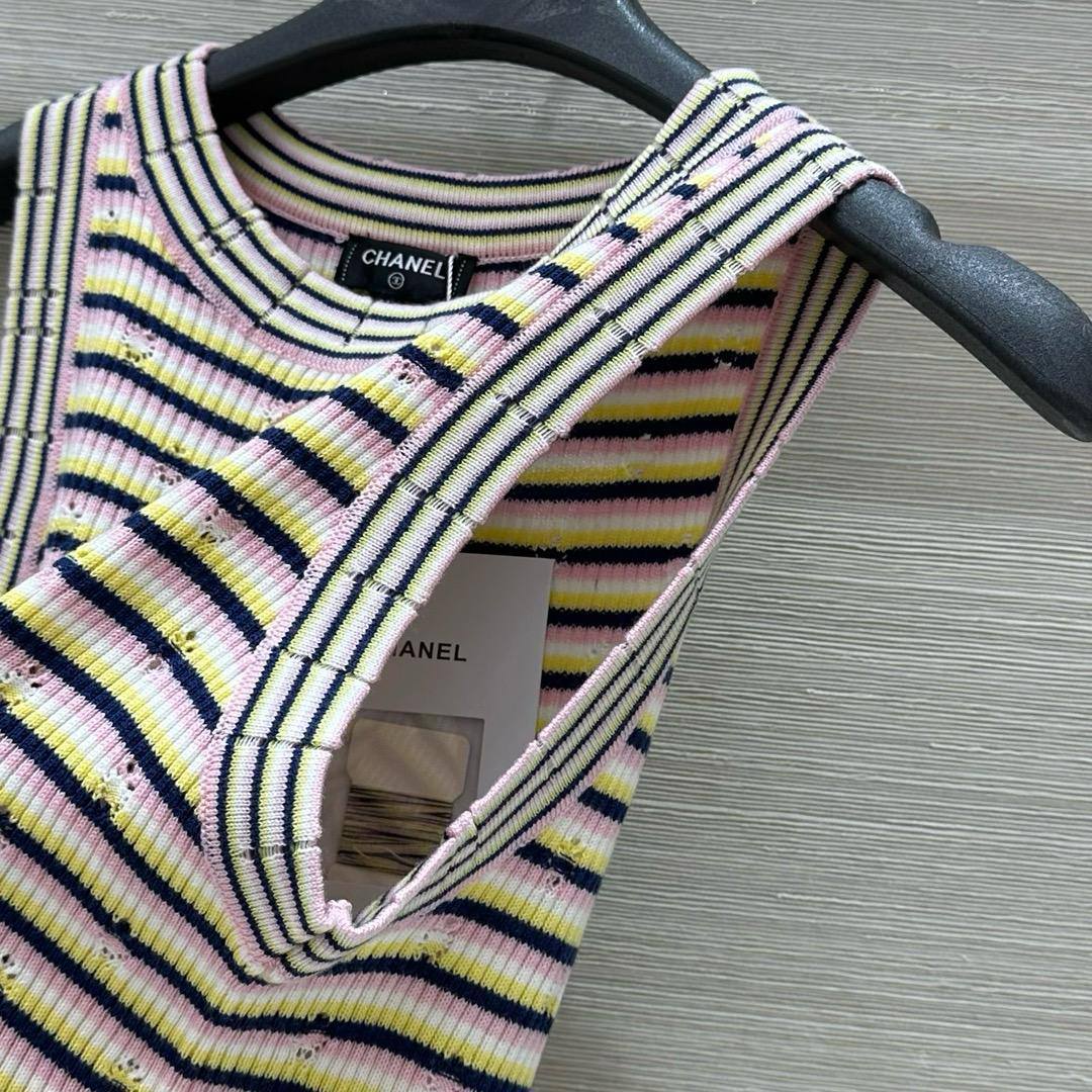 Майка Chanel LUX-116203 представляет собой стильный элемент гардероба, выполненный в фирменном стиле бренда. Майка выполнена в полоску с элементами отделки и небольшим логотипом. Она идеально подходит для создания модных и запоминающихся образов.