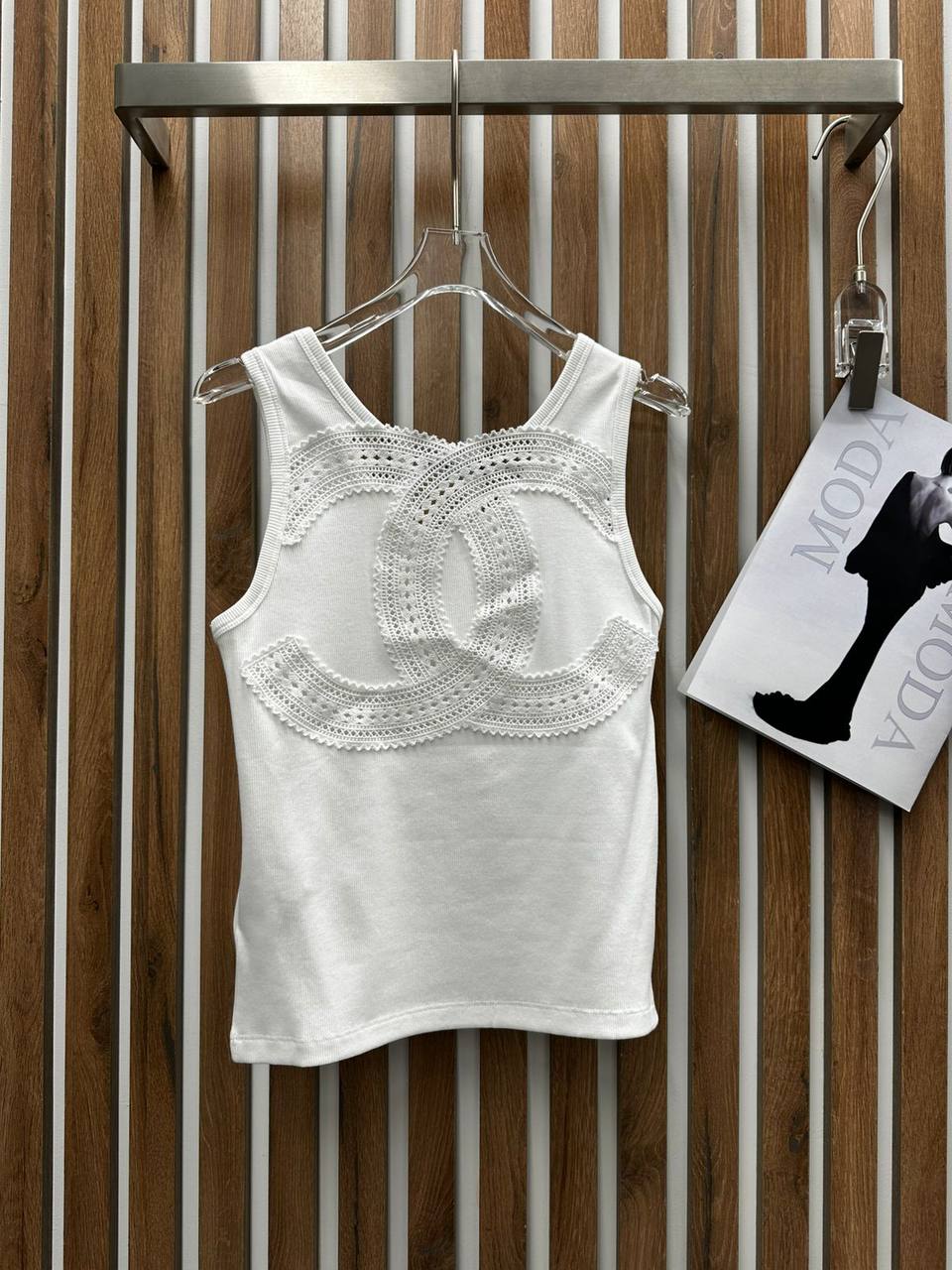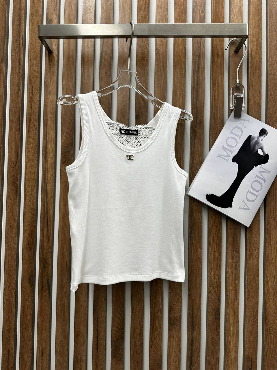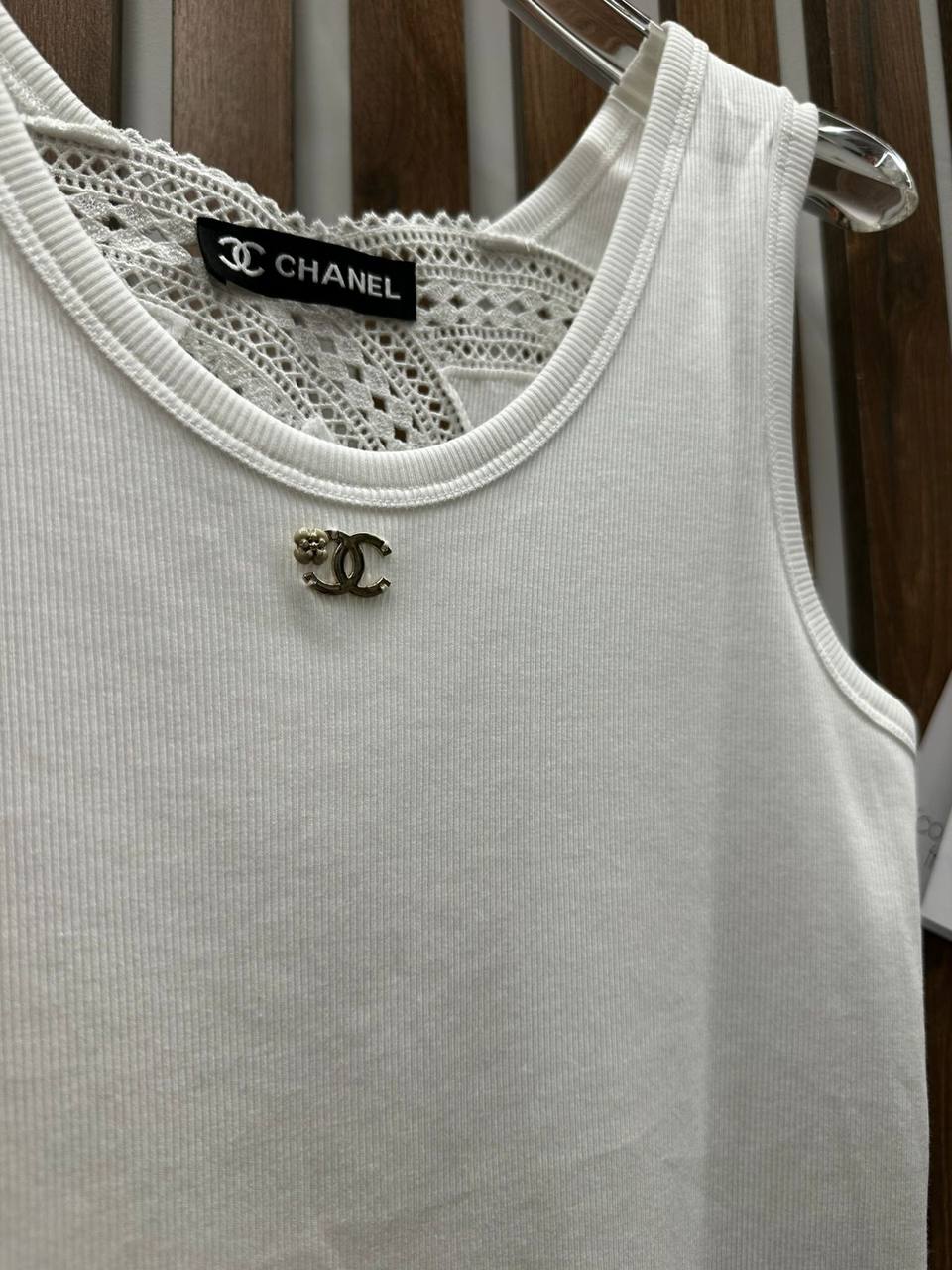 Майка Chanel LUX-121077 – это стильный и элегантный предмет женского гардероба. Эта майка отлично подойдет для создания как повседневных, так и более изысканных образов.