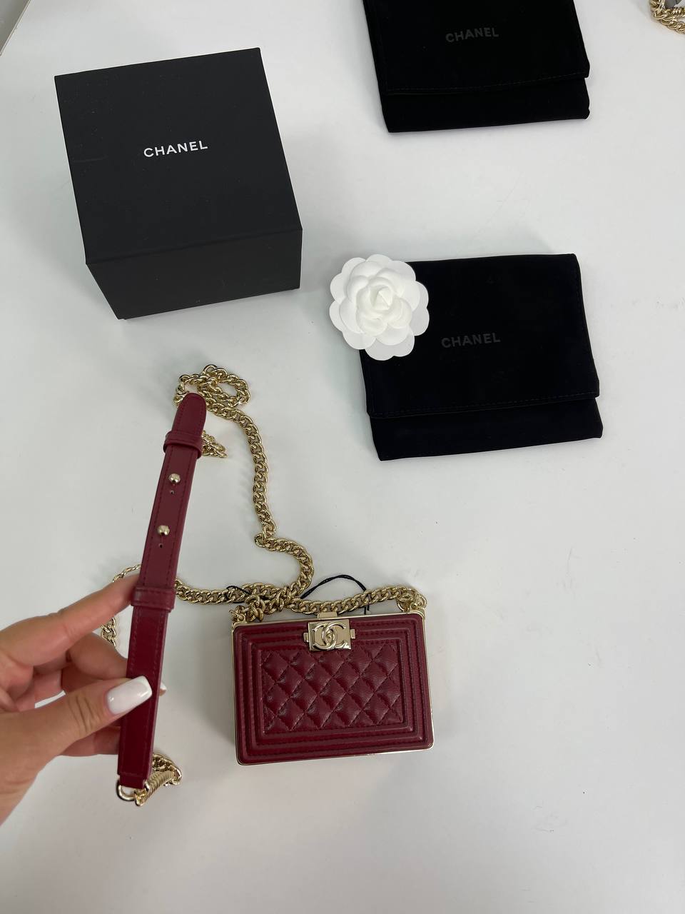 Минодьер Chanel Boy LUX-75840 – это элегантная сумка-клатч, сочетающая в себе роскошь и современный стиль. Выполнена в насыщенном бордовом цвете с фирменным стеганым узором. Этот аксессуар станет идеальным дополнением к вечернему образу, подчеркивая изысканный вкус своей обладательницы.