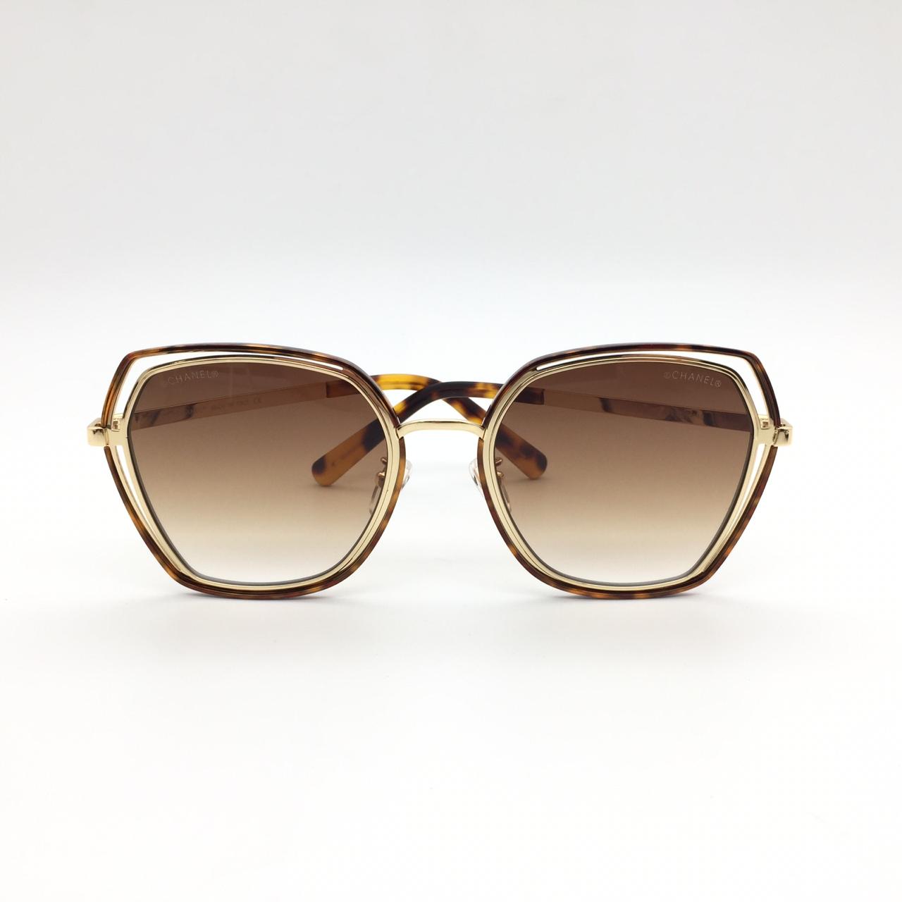 Эти элегантные очки Chanel LUX-11674 представляют собой изысканный аксессуар, сочетающий классический дизайн с современными трендами. Оправа выполнена в оттенке черепахового окраса с золотистыми элементами, что придает им роскошный вид. Градиентные коричневые линзы обеспечивают стильную защиту от солнца.