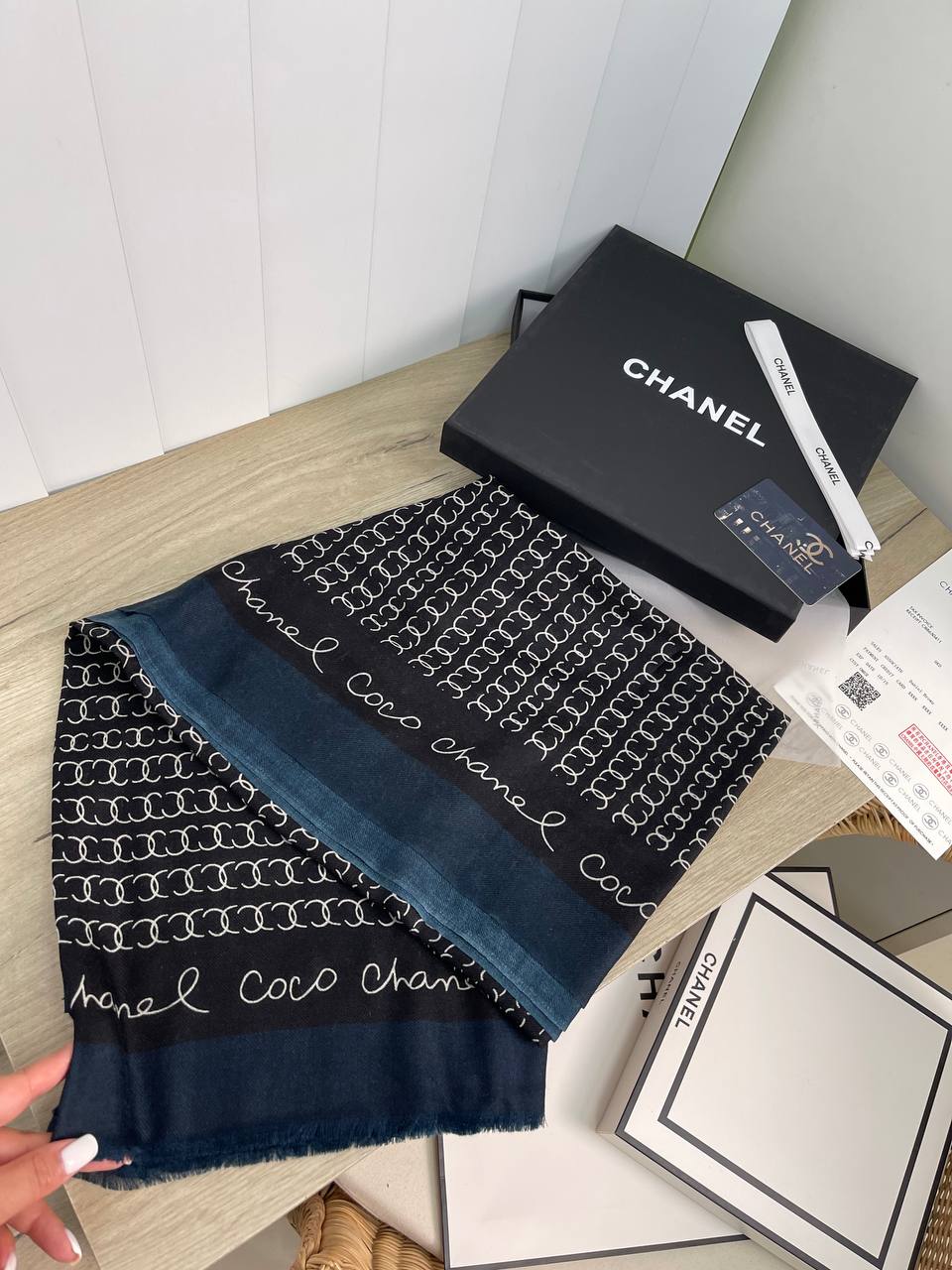 Палантин Chanel LUX-75617 — это стильный аксессуар от известного бренда. Палантин выполнен в классическом стиле, сочетает в себе элегантность и утонченность. Темный фон изделия украшен фирменным узором бренда и надписями.